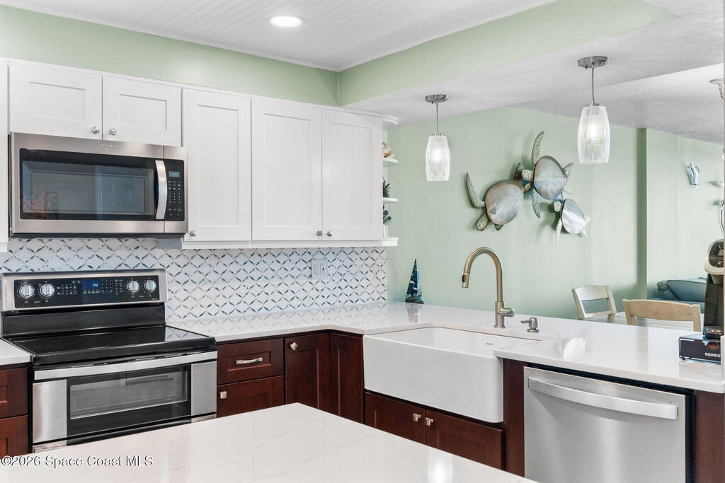 Welcome to Majestic Seas--one of Cocoa Beach's most sought-after oceanfront condominiums- and an unbeatable location. This beautifully updated residence has been fully renovated throughout! Stunning kitchen w/ quartz countertops, new cabinetry, & all-new appliances, blending style and function for everyday living or entertaining. Incredible direct ocean views, breathtaking sunrises & exciting rocket launches right from your large, private balcony! A versatile flex space with modern barn doors offers the perfect solution for a home office or third bedroom when guests arrive. Located on iconic Ocean Beach Boulevard, you're just steps from everything - the Cocoa Beach Pier, restaurants, bars, shopping, and Publix--all within easy walking distance. This is a well-maintained, financially strong building, offering peace of mind and resort-style amenities including: heated pool, beach access, fitness center, clubhouse, Private entry deeded garage and storage. AC one year, furniture negotiable
