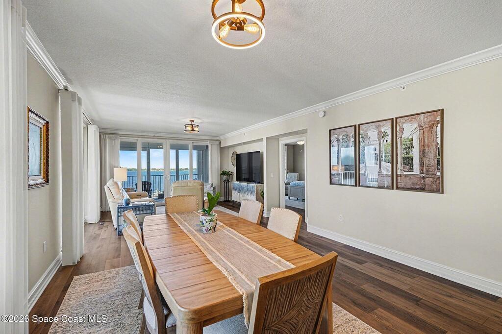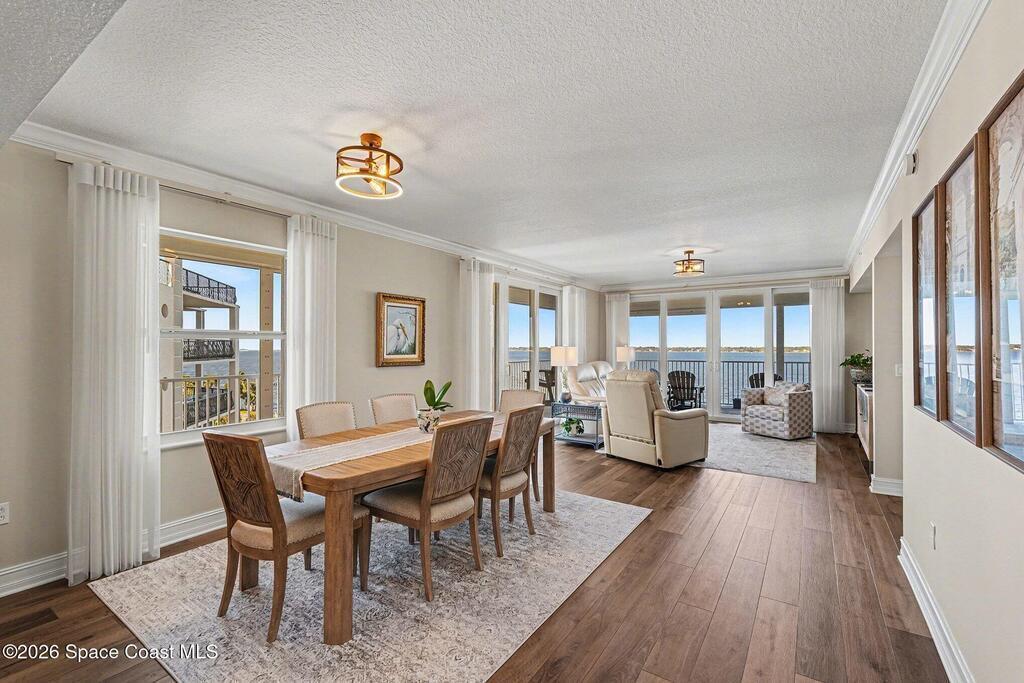 This 7th-floor northeast corner residence presents a refined coastal luxury lifestyle, offering four bedrooms and three full baths, including 2 private en-suite retreat. Floor-to-ceiling windows frame panoramic Indian River views, where golden sunrises, playful dolphins, and awe-inspiring rocket launches create a daily spectacle.Designed with model-home sophistication, the residence features fresh designer paint tones and a seamless open-concept layout that enhances light and flow. The upgraded chef's kitchen is both elegant and functional, showcasing custom extended countertops, a movable statement island, and generous custom cabinetry--perfect for entertaining or everyday luxury living.Step outside to a private marina just moments away, with boat slip ownership or rental options available, offering effortless access to waterfront adventures. Electric roll-down storm shutters provide both peace of mind and modern convenience.The impeccably maintained building is FULLY funded