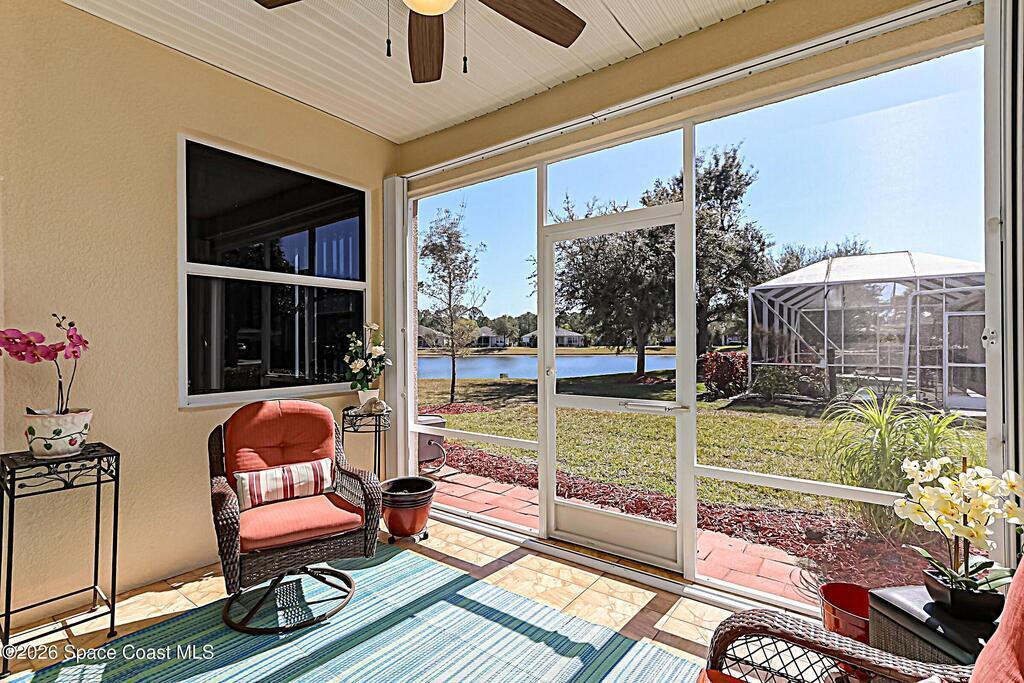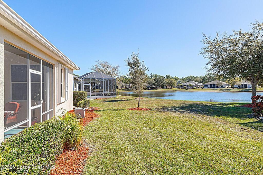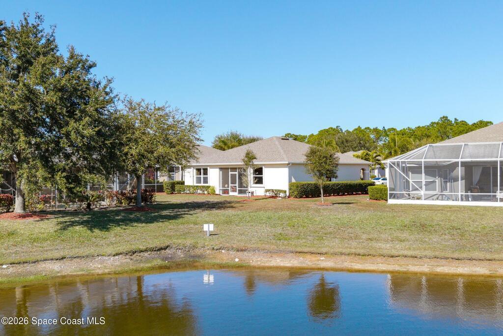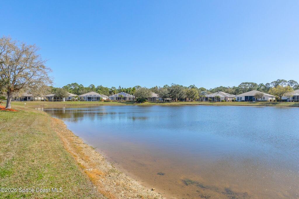 This outstanding lakeview home is located on a quiet street in the gated community of Monterey Cove at Bayside Lakes. Move-in condition! Monterey Cove has only one street with no through traffic. Just a five minute walk to the community center which has a clubhouse, resort style pool, exercise room, playground, tennis and basketball courts. Just short drive to Publix grocery, banks, Walgreens, Starbucks, and Dollar General and more. The home is a former model and features a new roof in 2021, H/W heater 2025, recent in and outside paint, accordion hurricane shutters (easy to open and close), oversized garage with windows (natural light) and access doors, and a screened and trussed patio. Tiled and upgraded vinyl flooring throughout (no carpeting), recessed lighting in living room. Kitchen features SS appliances, a double oven, and breakfast nook with lake view. Low HOA fee includes lawn and sprinkler care (perfect for those who travel or are part time residents). Agents: See Remarks.