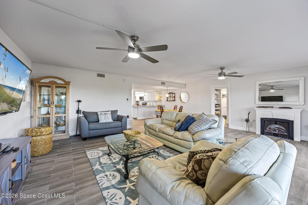 Welcome to this oceanfront, first-floor condo in the heart of Cocoa Beach. Step out from your screened back porch and, in less than a minute, have your toes in the sand. This unit has been completely remodeled from top to bottom, including new plumbing, electrical, hurricane-impact windows, AC duct work, tile flooring, kitchen, and bathrooms. The entire condo has been fully rewired with CAT6 ethernet and coaxial cable, and all interior drywall has been replaced with green board. The condo building's roof was replaced in 2025. This spacious unit offers the perfect blend of comfort, quality, and unbeatable beachfront living. The unit includes a one-car garage. Enjoy resort-style amenities including a pool, fitness center, sauna, pickleball, and tennis courts. Furniture is negotiable.