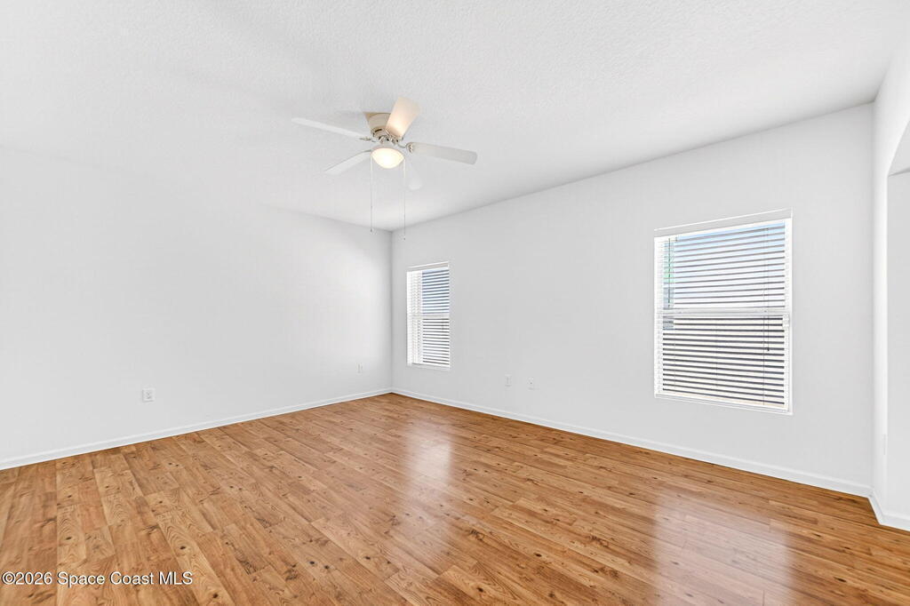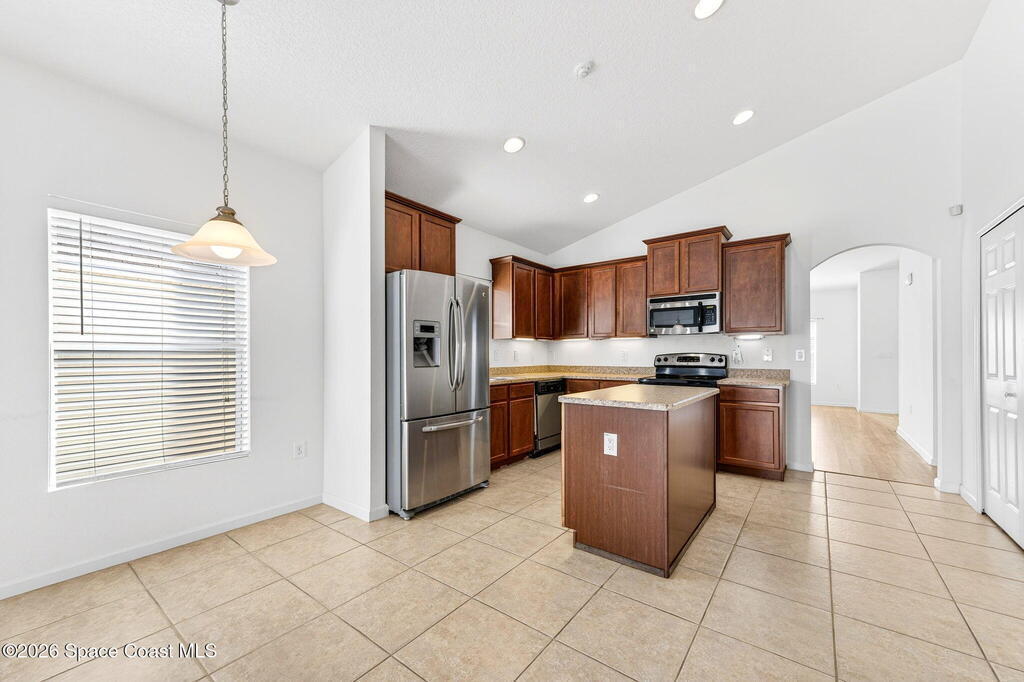 Nestled in the award-winning Sisson Meadows subdivision of Titusville, this 2010 D.R. Horton home offers a refined blend of upgrades, flexibility, and natural surroundings--ideal for today's Space Coast lifestyle. The neighborhood features winding streets, mature shade trees, manicured landscaping, and two scenic lakes stocked for catch-and-release fishing.Inside, the three-bedroom, two-bath layout centers around a well-appointed kitchen with rich cherry cabinetry, recessed lighting, 36-inch staggered uppers with crown molding, and stainless steel appliances. The open floor plan enhances both function and flow.The primary suite includes an attached flex space with its own closet, perfect for a home office, gym, or potential conversion to an additional bedroom. Conveniently located near major aerospace employers, this home offers versatility in a highly sought-after community.