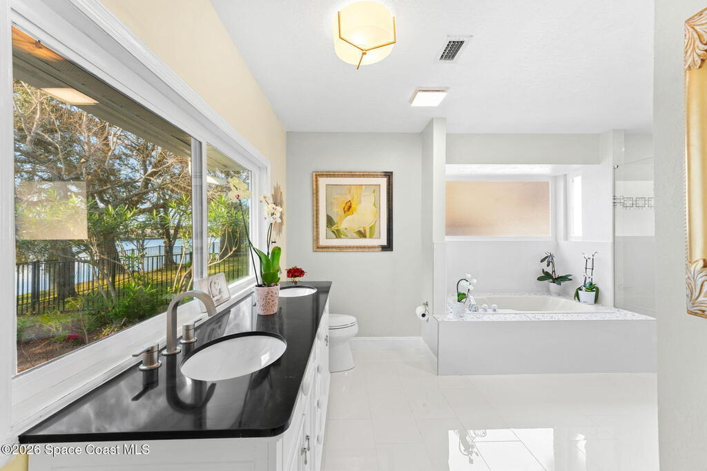 WATERFRONT- PRIVATE POOL and SPALocated in the highly sought-after Fairways at Suntree, this updated 4-bedroom, 3-bath, 2-car garage home, near golfing, offers peaceful lake views. The home features a spacious, open layout with a large living room, chimney, bar area, breakfast nook, a formal dining area, plus a separate family/living room ideal for entertaining. Recent updates include new flooring, renovated bathrooms, and newer appliances (not all shown in photos). The primary bedroom and all main living areas enjoy serene water views. Step outside to a private pool overlooking the lake, perfect for relaxing or hosting.This property is in a prime location near Suntree Country Club, numerous golf courses, the Brevard Zoo, The Avenue Viera for shopping and dining, easy access to beaches, the Kennedy Space Center, Melbourne and Orlando International Airports, Vero Beach, Disney World, and other world class attractions.