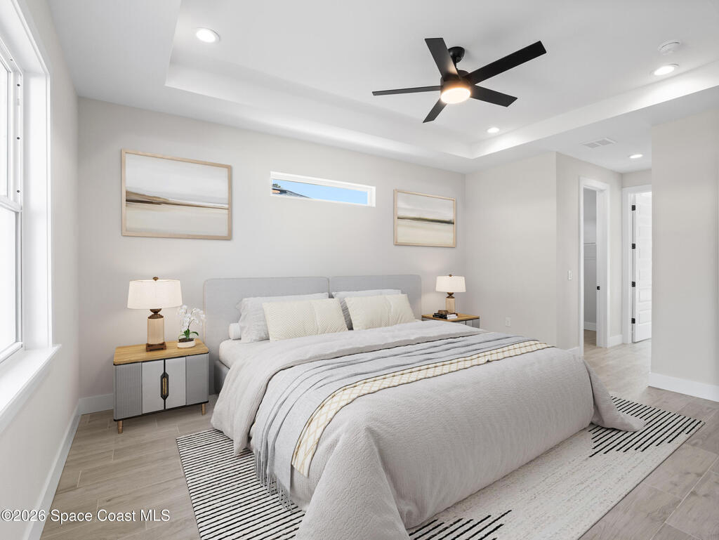 Impeccable craftsmanship and sophisticated design in the heart of Palm Bay, Florida. This stunning home embodies the essence of understated luxury, offering a serene retreat that blends modern high-end finishes with the relaxed atmosphere of the Space Coast. Every detail has been thoughtfully curated to provide a living experience that is both grand and inviting. The kitchen is anchored by a sprawling center island, perfect for entertaining or casual dining. This residence features lustrous quartz countertops not just in the kitchen, but carried seamlessly throughout the home, creating a cohesive aesthetic of elegance. Pristine tile flooring runs throughout the entire property, offering a cool, hypoallergenic, and sophisticated foundation that enhances the open, airy feel of the living spaces. The primary suite is a true sanctuary of relaxation. The en-suite bathroom rivals a high-end spa, featuring a grand walk-in shower equipped with dual rain shower heads, and a stand-alone bathtub