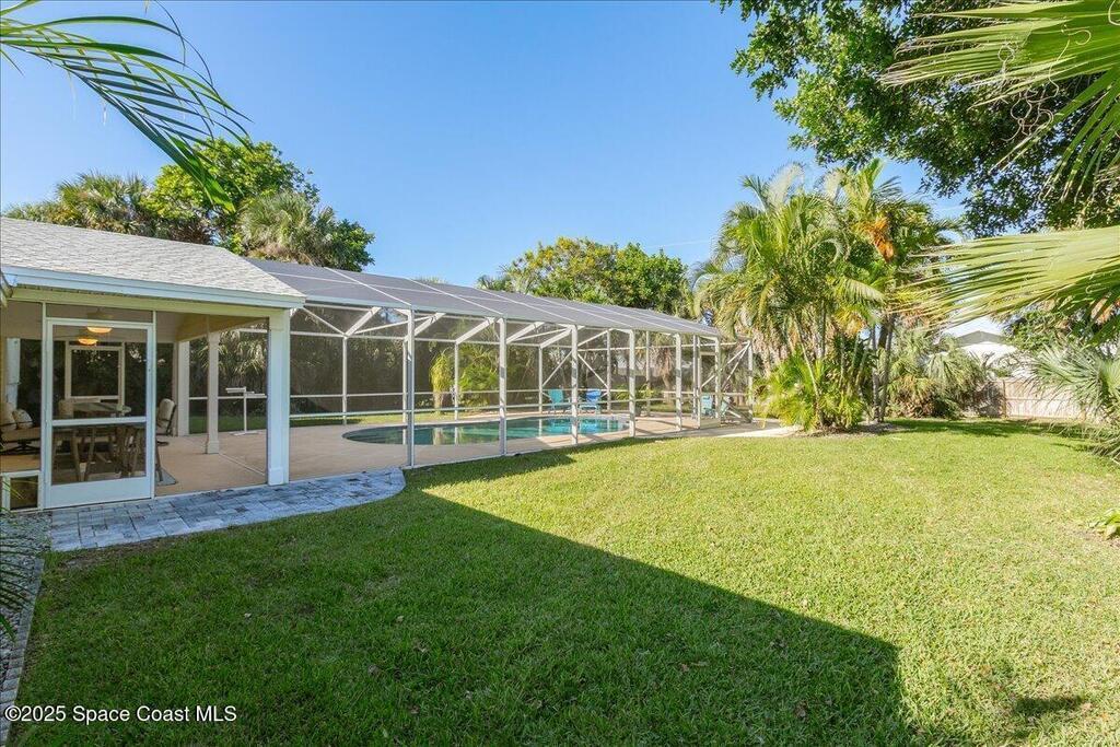 COASTAL PARADISE in the heart of Melbourne Beach! WALKING distance to Gemini Elementary, the beautiful Atlantic Ocean and Spessard holland golf course. OVERSIZED YARD allows for your own private oasis. HUGE POOL with privacy fence make for the ultimate place to unwind, relax and enjoy your own slice of paradise. The large yard also provides plenty of space for future additions. SPACIOUS KITCHEN with granite counter tops and ceramic tile flooring throughout This home also has a RARE LOWER LEVEL that adds an additional 667 sq ft. of space for a possible rec room and plenty of storage. There are many update to this home which include a NEW ROOF 08/25 with a transferable 50 year warranty, UPDATED IRRIGATION PUMP 08/25, A/C 2022, PAVER DRIVEWAY 2023. WATER HEATER 2020. Beautiful SCREENED IN LANAI 2023 and NEW LG ThinQ appliances. This home is truly a hidden treasure! Close to public boat ramp for Mel Beach residence. Enjoy fishing off the pier. Golf cart and bike friendly neighborhood.
