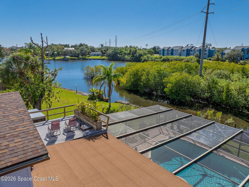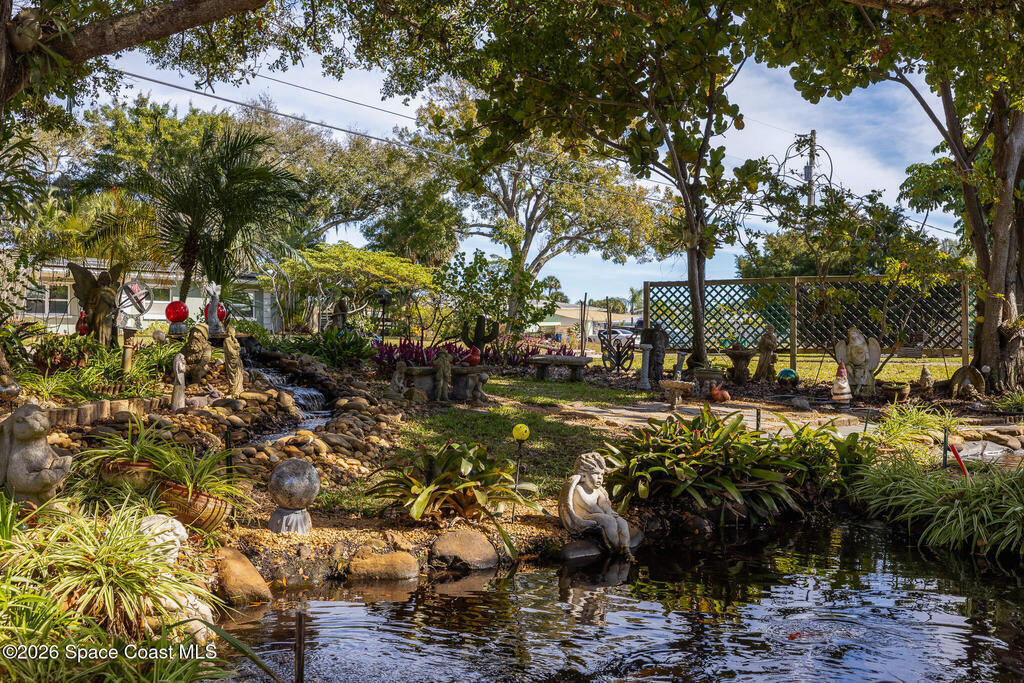 Tucked away in a quiet, no-HOA neighborhood, this move-in-ready 4-bed, 3-bath home is a peaceful sanctuary on the Eau Gallie River--minutes from the Eau Gallie Arts District and just 3 miles to the beach. Tranquil koi ponds with a waterfall welcome you home. Full of character and warmth, the home features a wood-burning fireplace, porcelain plank flooring downstairs, & hardwood floors upstairs. The upstairs primary suite opens to a private terrace overlooking the river. Enjoy a saltwater, solar-heated pool--one of the largest residential pools in Brevard County--completely redone in '25. Room for a floating dock, while protected wetlands behind the home provide lasting privacy. Updates include a new roof (25), fresh paint, and new AC pump ('26). Additional features include an indoor laundry room, 2-car garage, shed, & large driveway w/ room for RV or boat parking. A rare blend of privacy, character, & location--FL living at its finest.VIDEO: https://www.youtube.com/watch?v=FNKF1bRjusE