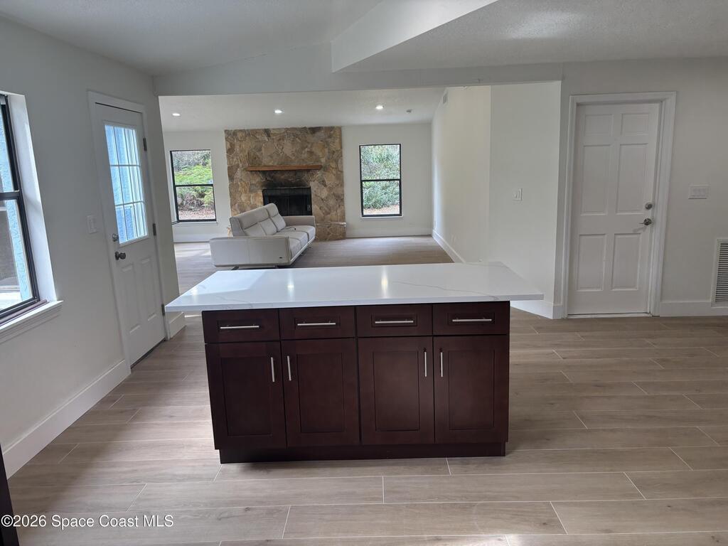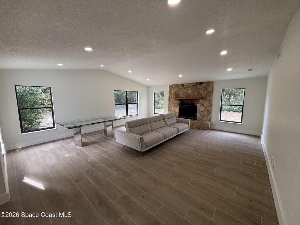 Beautifully remodeled 3BR/2BA home located in a quiet, desirable area of Merritt Island along Tropical Trail. This move-in-ready residence features all-new flooring throughout, a completely updated kitchen with new cabinetry and appliances, and fully renovated bathrooms. The living area offers a cozy fireplace, creating a warm and inviting atmosphere. Surrounded by mature trees and natural wooded views, the property also offers river frontage along the Indian River Lagoon, providing a serene and private setting. A rare opportunity to enjoy modern updates with a peaceful, nature-filled backdrop.