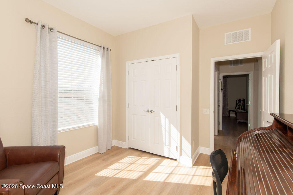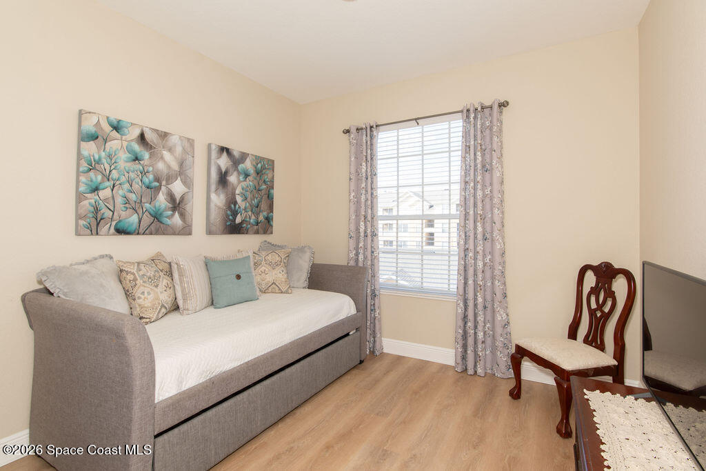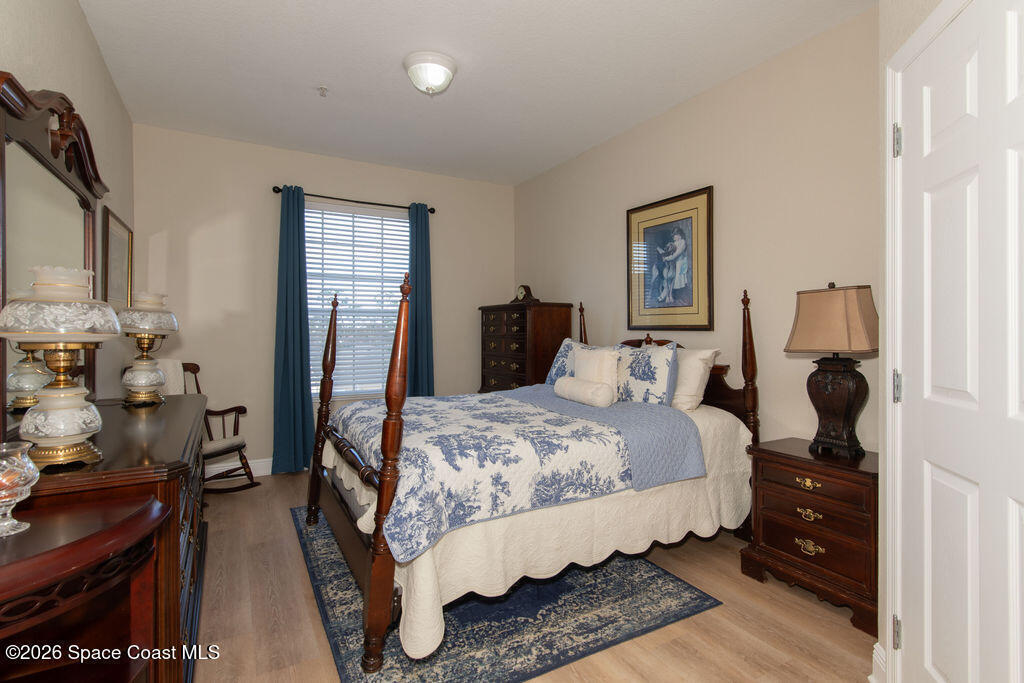 Experience low-maintenance luxury in this private 3rd-floor corner condo at the gated Ventura at Turtle Creek! This move-in ready home features high ceilings and a split-bedroom layout with absolutely NO CARPET. Durable tile flooring spans the entry and kitchen, transitioning seamlessly to premium wood-tone flooring in the dining room, living area, and all bedrooms. The open kitchen impresses with solid surface counters, warm wood cabinetry, and a pass-through overlooking the dining area. Relax on your private screened balcony with architectural arched framing and breezy top-floor views. Peace of mind is guaranteed with a NEW HVAC (2024), fresh interior paint, and updated fixtures. A rare find, this elevator building includes Assigned Carport #278 with a spacious PRIVATE STORAGE CLOSET directly at your spot. Enjoy resort-style living with a pool, clubhouse, and fitness center. Located in Rockledge minutes from Viera. Furnishings are available for purchase separately.