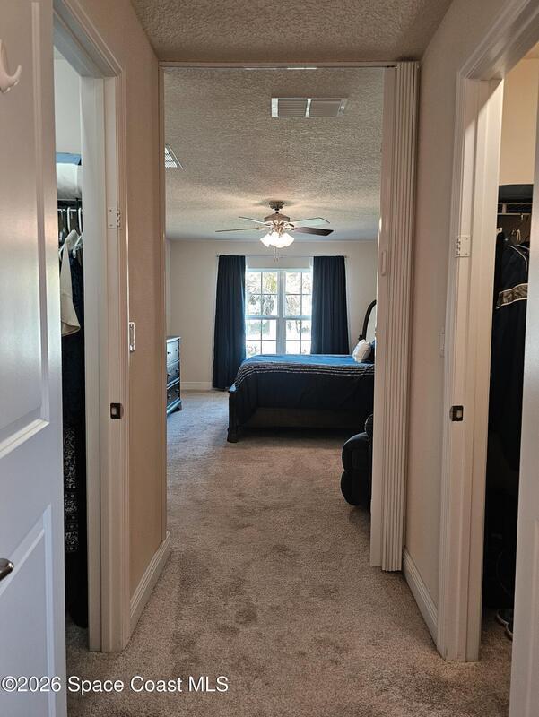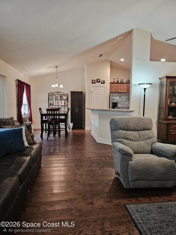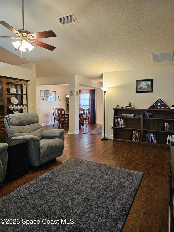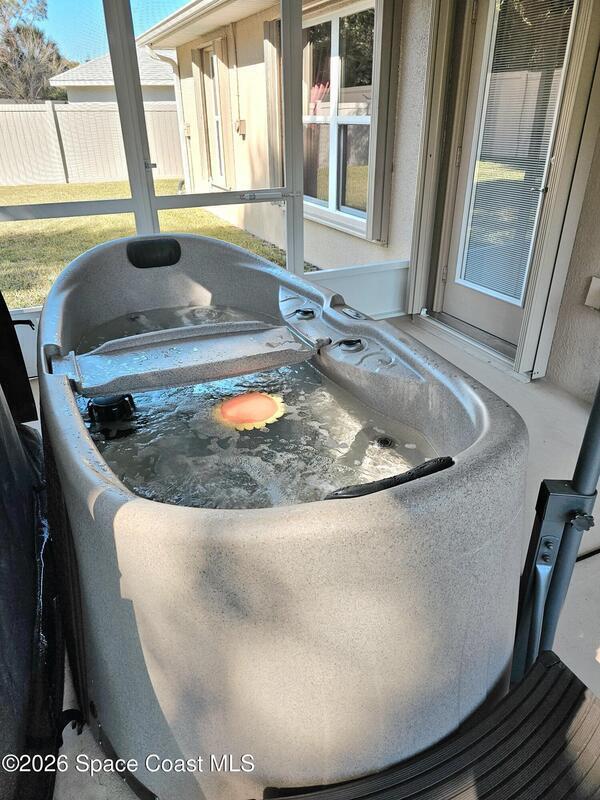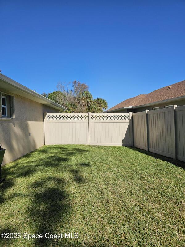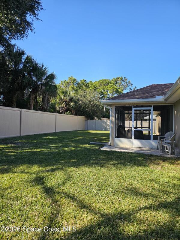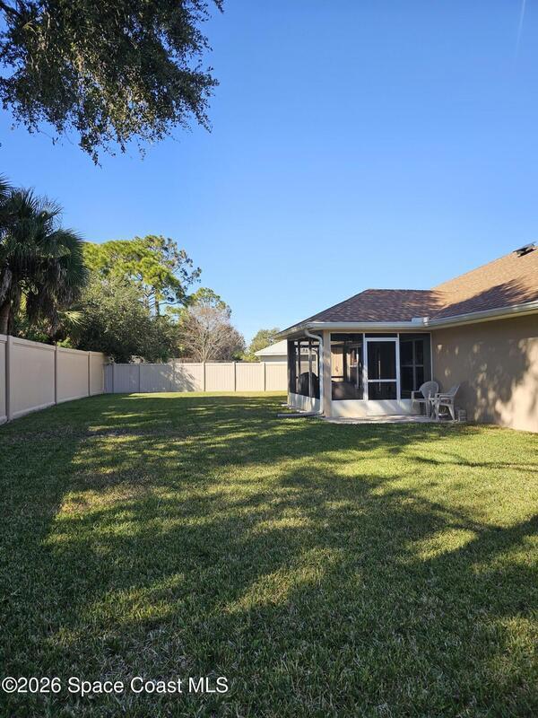 Tucked away at the end of the road, this well‑maintained home offers exceptional privacy while keeping you close to everything West Melbourne has to offer. Thoughtfully designed split floor plan includes three bedrooms plus a versatile flex room--perfect for an office or potential fourth bedroom. Vaulted ceilings enhance the spacious feel of the main living areas, where the family room flows seamlessly into the kitchen, breakfast nook & formal dining room. Stylish, durable luxury wood‑plank vinyl flooring throughout the main living areas & upgraded carpet in bedrooms & flex room. Primary suite features two walk‑in closets & an ensuite bath complete with double sinks, a walk‑in linen closet, & a separate shower. Accordion hurricane shutters for added peace of mind. Outdoor living shines with a screened‑in lanai & spa, newly added paver areas, & a large fully fenced backyard. Additional conveniences include an electrical hookup for a generator, Roof 2023, A/C 2023, HWH 2025