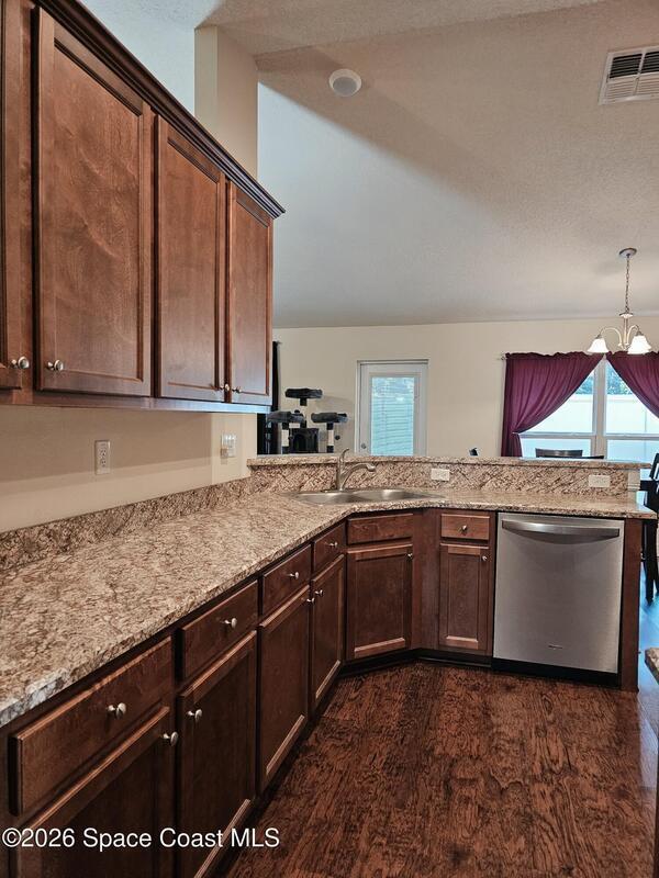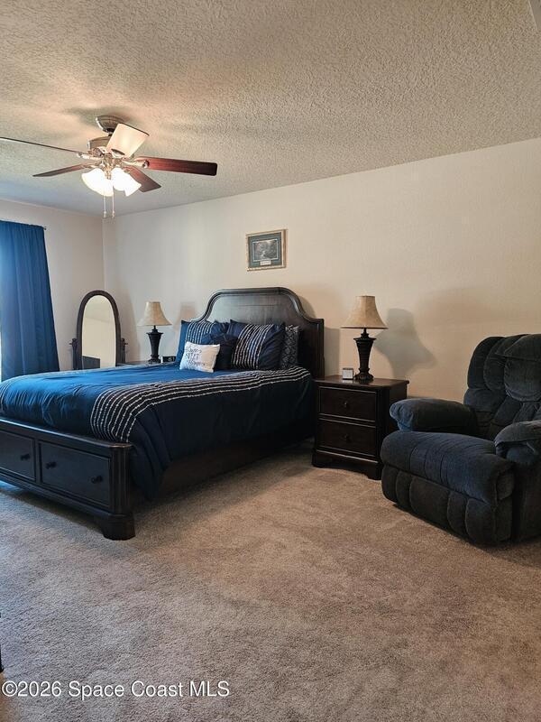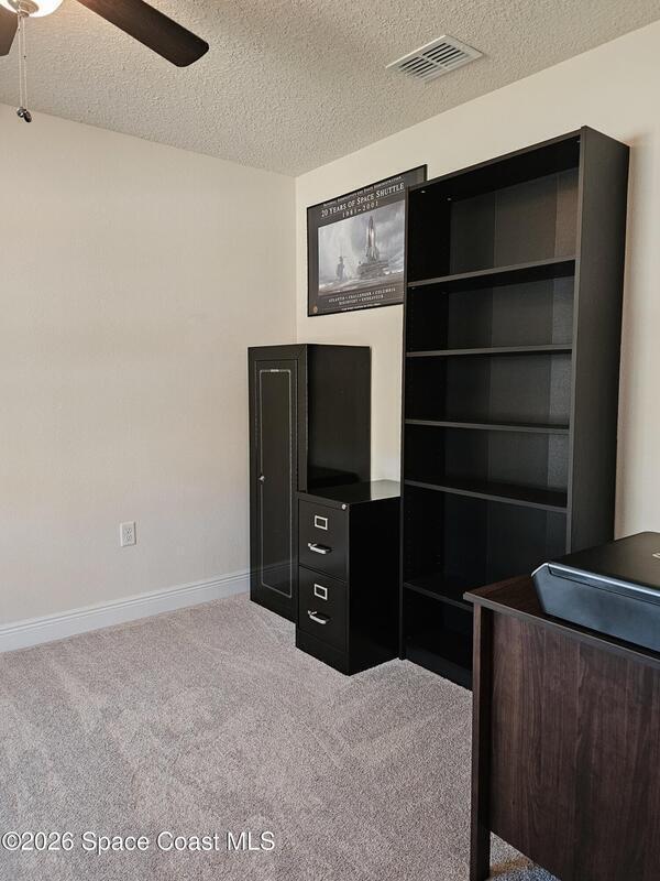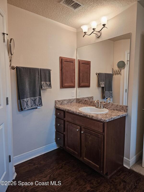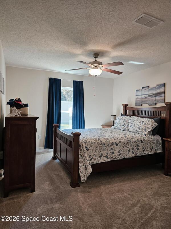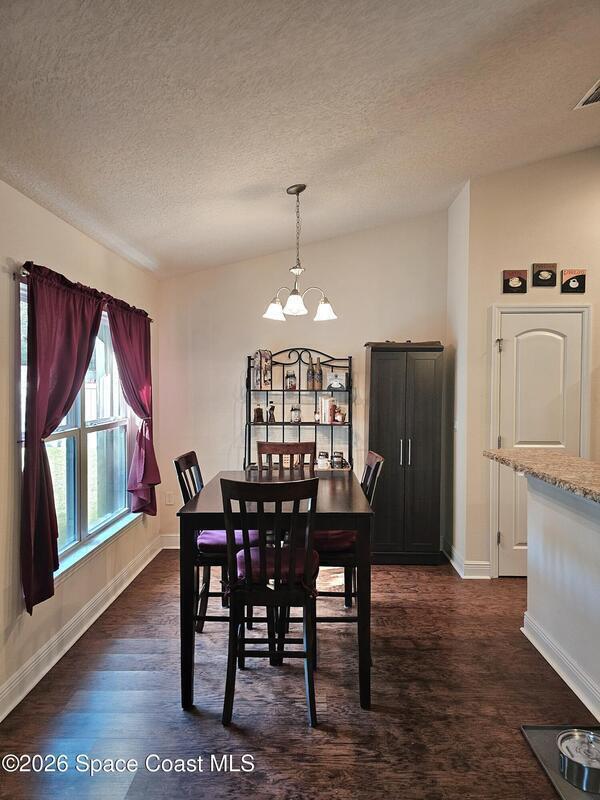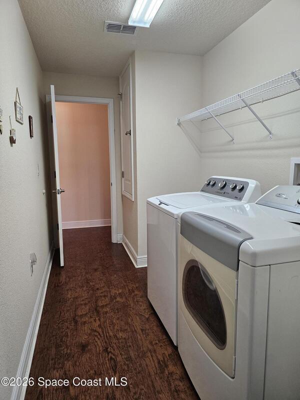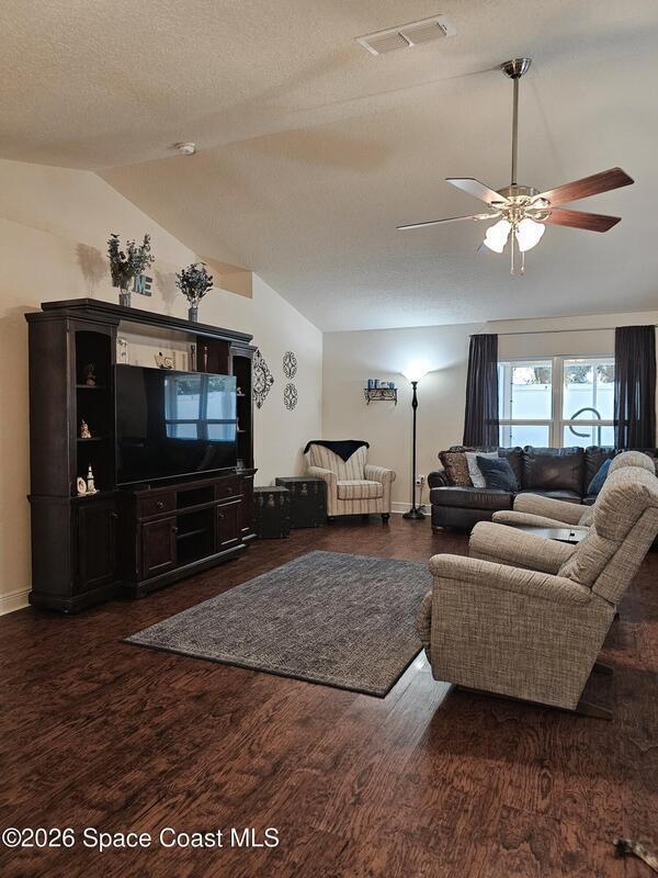 Tucked away at the end of the road, this well‑maintained home offers exceptional privacy while keeping you close to everything West Melbourne has to offer. Thoughtfully designed split floor plan includes three bedrooms plus a versatile flex room--perfect for an office or potential fourth bedroom. Vaulted ceilings enhance the spacious feel of the main living areas, where the family room flows seamlessly into the kitchen, breakfast nook & formal dining room. Stylish, durable luxury wood‑plank vinyl flooring throughout the main living areas & upgraded carpet in bedrooms & flex room. Primary suite features two walk‑in closets & an ensuite bath complete with double sinks, a walk‑in linen closet, & a separate shower. Accordion hurricane shutters for added peace of mind. Outdoor living shines with a screened‑in lanai & spa, newly added paver areas, & a large fully fenced backyard. Additional conveniences include an electrical hookup for a generator, Roof 2023, A/C 2023, HWH 2025