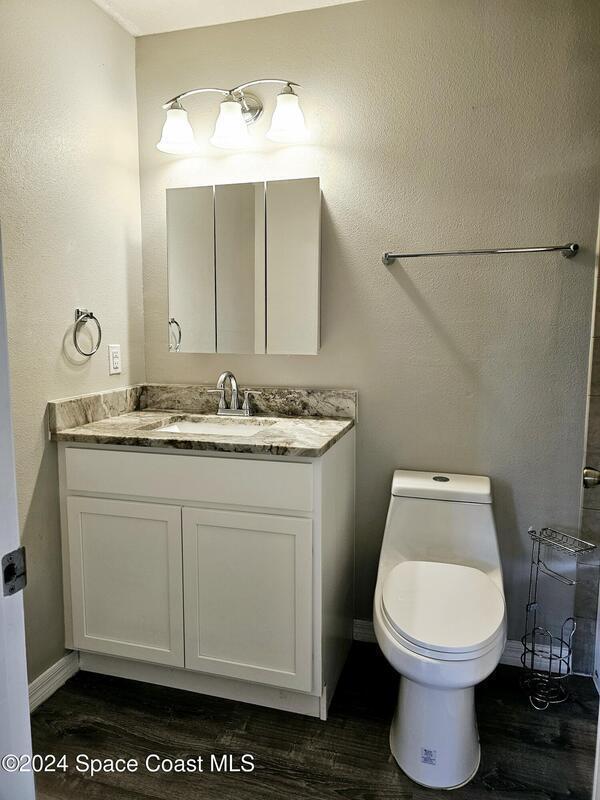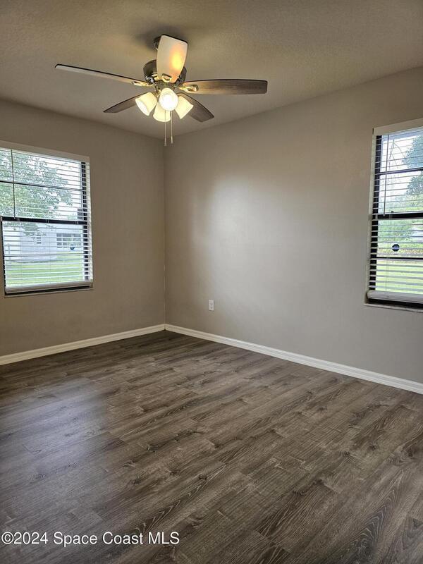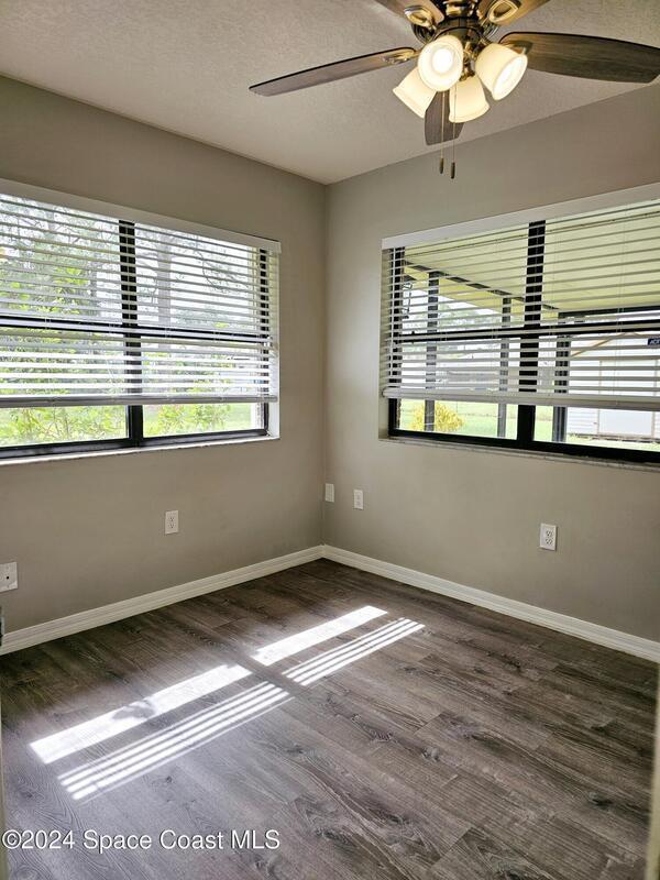 No HOA! City water & sewer. Remodeled. Recently added accordion hurricane shutters. Large backyard with two sheds for extra storage. Interior remodel includes new wood plank vinyl flooring, new blinds, paint, lighting fixtures & ceiling fans, quartz countertops in kitchen & baths, vanities, fixtures & toilets in 2022. Previous owner converted the garage to the family room. There is an office or flex space off lanai, primary bedroom w/ slider to screened lanai. Roof 2023, A/C 2020, & HWH 2017.