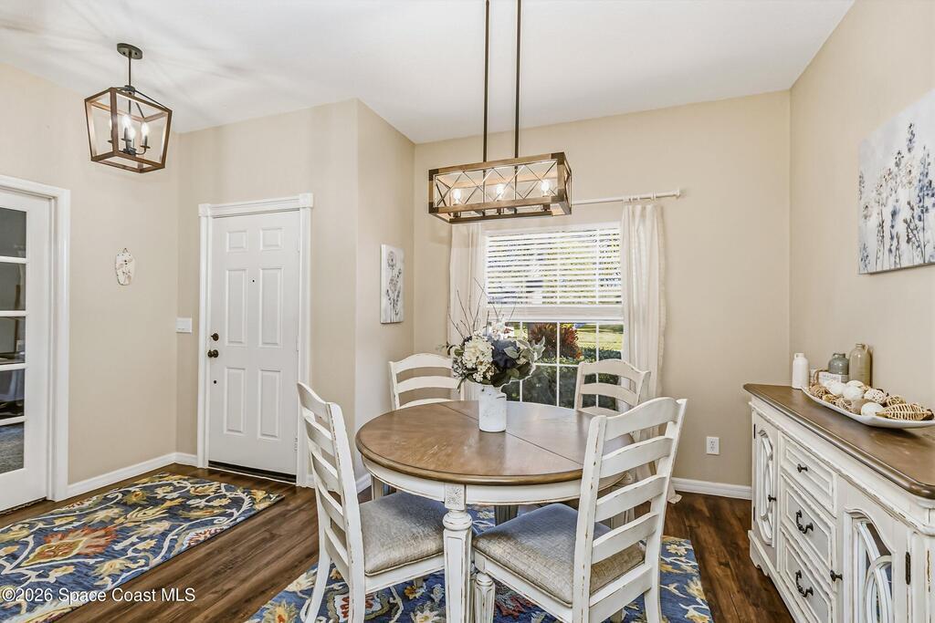 Welcome to your forever home in the highly desirable Pinewood Estates. This meticulously maintained residence combines peace of mind with modern elegance, boasting new roof, gutters, and fresh exterior paint (all in 2023) for standout curb appeal. Inside, the versatile floor plan features three spacious bedrooms plus a dedicated flex room/office or formal living room with french doors for privacy. The heart of the home is the updated kitchen, anchored by stunning Cambria quartz countertops, snack bar, SS Appliances and opens to the inviting family room. For special occasions, the formal dining room provides the perfect backdrop for hosting. The primary suite is a true retreat, offering dual sinks, a soaking tub, and a separate shower. Practical upgrades include a newer hot water heater and hurricane shutters for maximum protection. Step outside to the screened porch to enjoy your private backyard in comfort.
