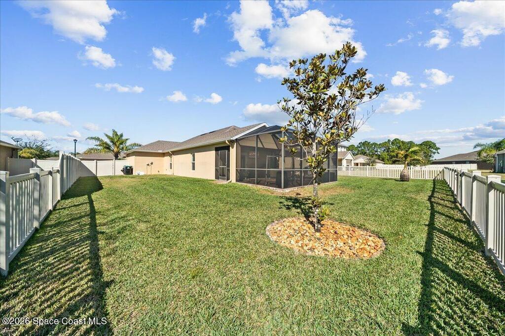 Tucked away on a quiet street in Southeast Palm Bay, this inviting home offers a peaceful setting with convenient access to everyday essentials. The property features a spacious outdoor living area with a screened lanai, fenced yard, and sprinkler system on a well, providing the perfect opportunity to create your own private retreat. Inside, you will find four bedrooms, two bathrooms, a large dining area, two separate living areas, and an eat in kitchen ideal for both everyday living and entertaining. The 3 car garage offers flexibility and is perfect for a workshop, home gym, or personalized space to suit your needs. Located near shopping, dining, schools, and beaches, this home combines comfort, privacy, and convenience in an established neighborhood. A great opportunity to enjoy the Florida lifestyle with plenty of room to grow.