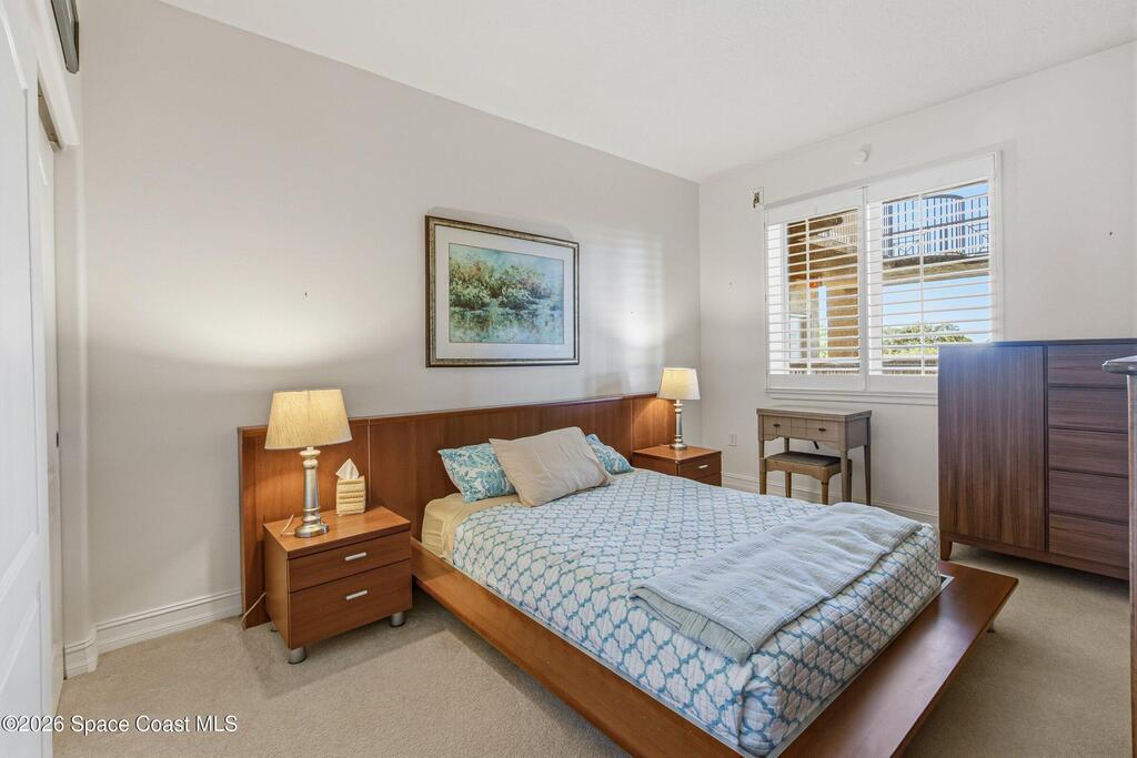 The most sought after direct Indian River views from this gorgeous 4th floor unit. Enjoy views of the Space Center and rocket launches, river wildlife and spectacular sunrises. 3 spacious bedrooms- main bedroom with slider to balcony for private enjoyment. His & her closets, large main bathroom with double vanity, garden tub and separate shower. Large kitchen with appliances all new in 2021. Eat in area off the kitchen. Dining room and great room both with views of the river. Unit also offers small sitting room/office. Water heater replaced in 2019, AC in 2024 and washer/dryer 2023. Beautifully maintained complex offers pool, underground parking and up to date security.