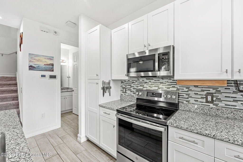 Imagine coming home to this gorgeous Nearly NEW Coastal Design Townhome! Nestled in the gated enclave, Riverwalk of Melbourne, this open concept floorplan boasts natural light & inviting neutral colors throughout. Spacious w/3 bedrooms, 2 & 1/2 baths and 2 car garage! Upgraded with beautiful wood-look tile floors and luxury carpet! Feel right at home preparing meals in this stunning well designed kitchen-upgraded white cabinetry, granite counters and GE Profile appliances. Built in 2022 and equipped with the latest energy efficient construction, modern smart home technology, and insulated Impact windows & doors. Add'l features/upgrades include tile roof, paver driveway, 8' doors, epoxy painted garage floors, and screened covered front porch to name a few. The community offers resort style amenities-pool, spa, fitness center & clubhouse! Just a short drive to our beautiful beaches, thriving EGAD & downtown Melbourne for shopping and restaurants and all the Space Coast has to offer!