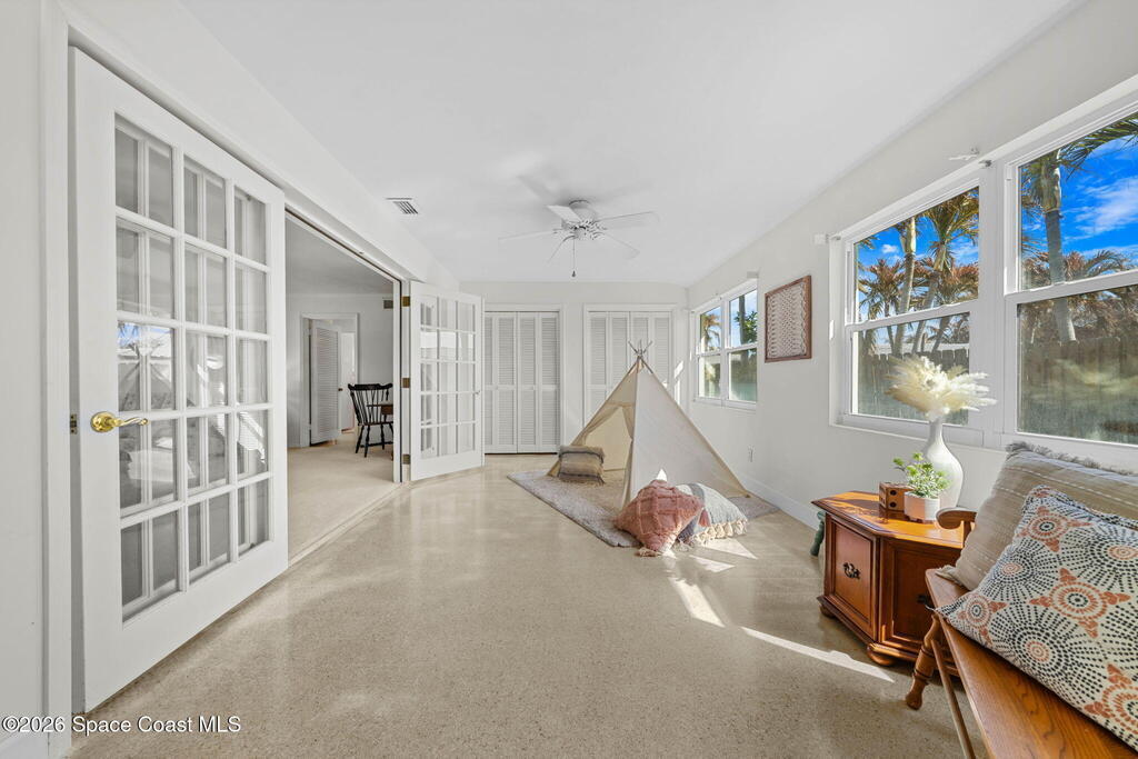 This thoughtfully designed 3-bedroom, 2-bathroom Indialantic home offers the flexible space today's buyers seek, featuring dual living areas, a dedicated home office, and an air-conditioned enclosed porch that extends living space year-round. An oversized 2-car garage and additional screened enclosure provide even more usable square footage.Major systems have been updated, including a 2019 roof, 2024 HVAC system, and 2021 water heater. Original terrazzo floors add timeless character and easy maintenance.Living area reflects the enclosed rear porch under air and differs from tax roll.Located in one of Indialantic's most desirable beachside neighborhoods, you're minutes from ocean access, parks, dining, and shopping.