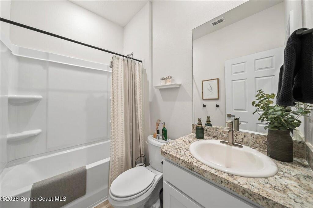 Scroll-stopper, Show-stopper!Built in 2023, located in the newer community of Huntington Cove is this upgraded Jupiter floor-plan that's a decorators dream come true. This move-in ready residence has the look and feel of not just a model home, but more like a home showcased on HGTV!Checking boxes all the way down the list!*Spacious great room open concept plan*Luxury plank flooring *Upgraded kitchen with white cabinetry, quartz counters, subway tile backsplash, stainless appliances *Designer lighting fixtures/fans*Custom Batten accent entry wall*Plantation shutters*Frameless glass shower in primary*Custom window treatments *Modern interior door handles *Spacious and privacy fenced (6ft PVC vinyl) *Epoxy coated garage floor*Custom landscape curbing*Screened lanai *Front storm glass door*Gutters around home*Convenient, central Rockledge location, community of newer homes, less than 10 min to Viera or Cocoa Village!