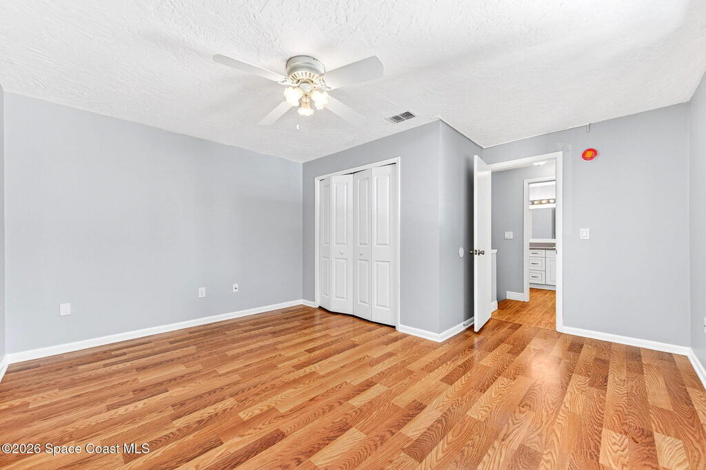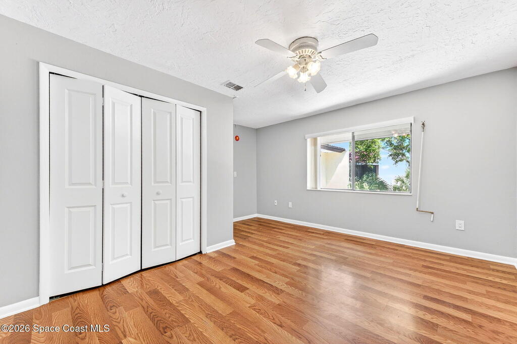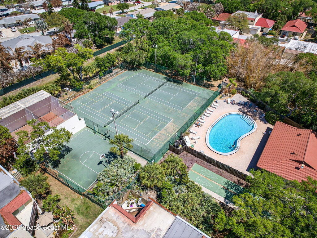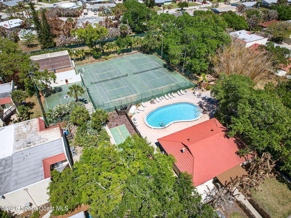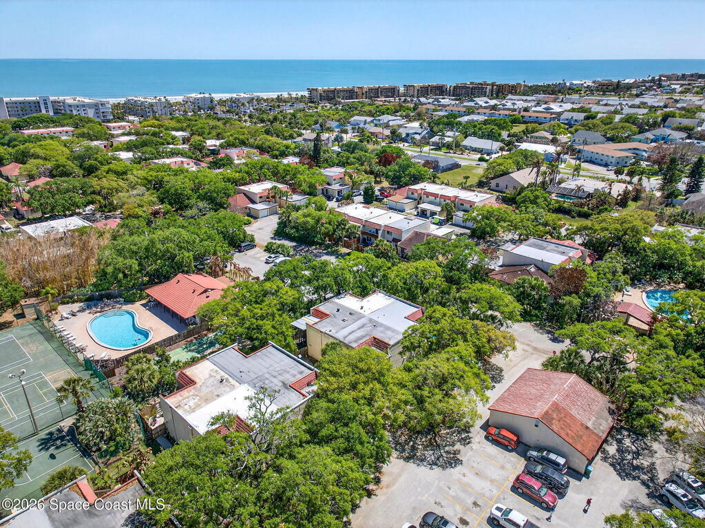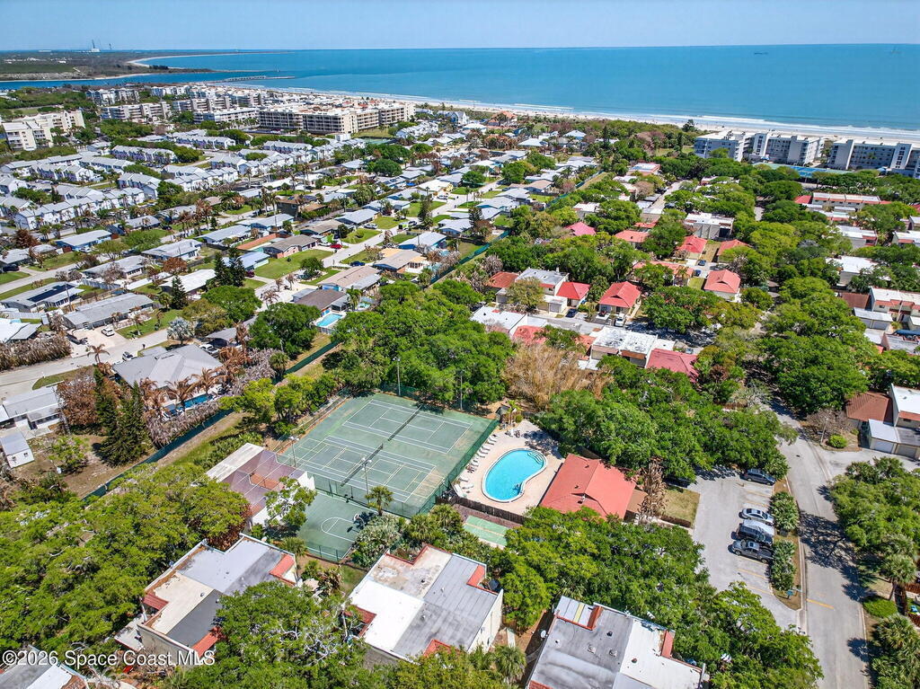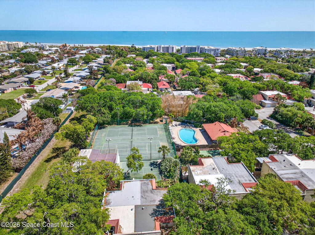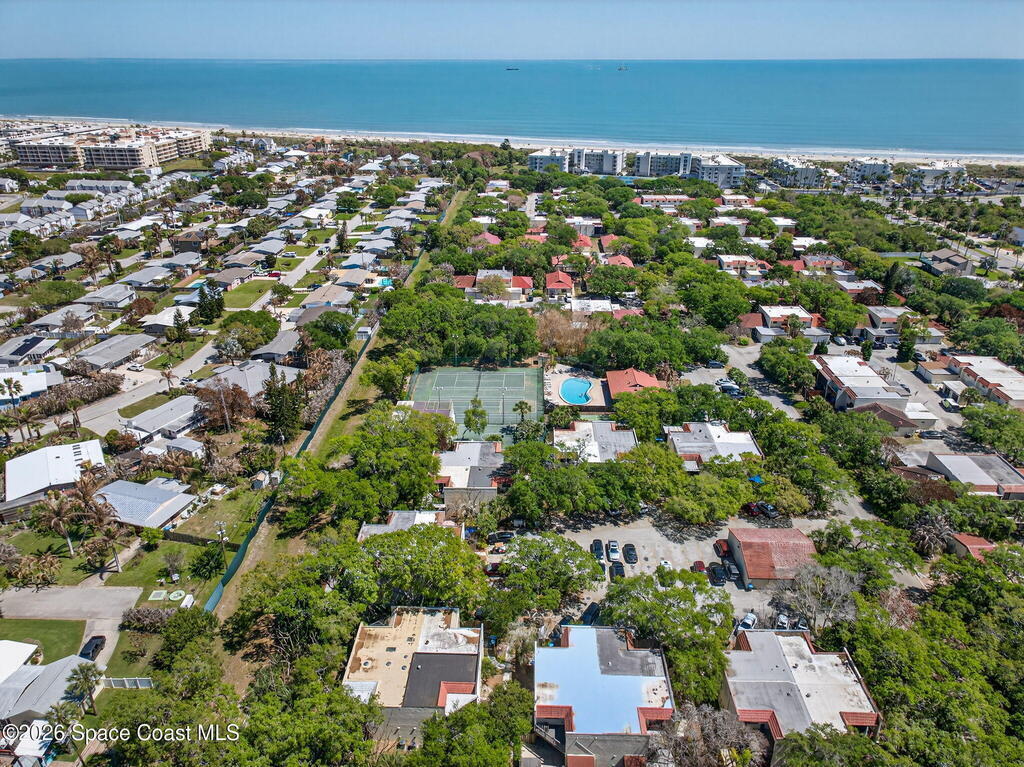 Enjoy the tropical surroundings in this beachside community. Stroll, jog or bike down the private pathway to the ocean & beach. Gated entry. This townhome has been freshly painted. White kitchen cabinets, updated counters, stainless steel appliance. Bathrooms have updated vanities, primary bathtub & shower. Tile & laminate flooring. Sliders from Kitchen to private courtyard. Washer/dryer hook up Community has 2 pools, tennis, rec room, & more. Close to Port Canaveral and all major roadways.New roof, exterior painted approx. 3 years ago, interior painted 2026, new vertical blinds 2026.Hurricane Shutters.