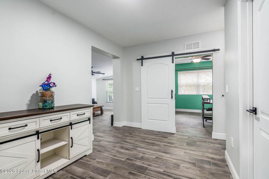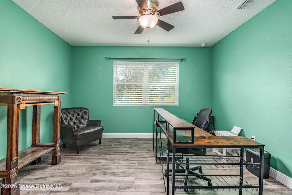Just 5 min. walk to FIT - (Florida Tech) in Melbourne, this 4-bedroom home offers great value with $167K in thoughtful upgrades, all completed in 2023 for a clean, modern feel. The updated kitchen features a wall oven, gas cooktop, quartz counters, new cabinetry, and hardware flowing into a casual dining area. A small office provides work-from-home flexibility, while the indoor laundry room adds everyday convenience. The refreshed bathrooms include floor-to-ceiling tiled showers with glass enclosures, new vanities, and contemporary finishes. Wood-look tile flooring runs throughout for a cohesive, low-maintenance design--no carpet. Major updates include a 2017 metal roof, electrical panel, and impact windows throughout, offering durability and peace of mind. Outside, a large backyard with a spacious porch is ideal for relaxing or entertaining, plus a shed for storage. A solid, move-in-ready home in a central location near shopping, dining, major employers, and just 10 min. to the beach.