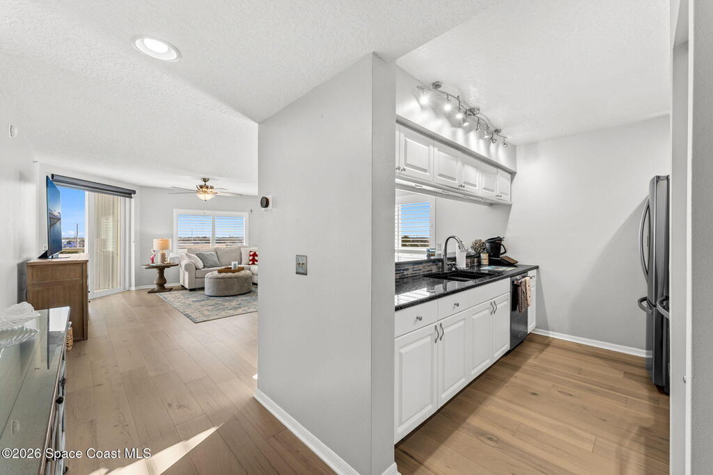 Experience effortless coastal living in this turnkey, fully remodeled 2-bedroom, 2-bath residence perched on the fifth floor of the highly sought after Vizcaya condominium. Thoughtfully updated with stylish luxury vinyl flooring and modern finishes throughout, this home offers a refined yet relaxed beachside aesthetic. A beautiful side-ocean view provides a daily backdrop of shimmering water and soothing sea breezes, while the elevated vantage point fills the residence with natural light and a serene coastal ambiance. The open layout is designed for both comfortable living and easy entertaining, blending functionality. Residents enjoy a heated oceanfront pool and convenient beach access, embracing the coastal lifestyle that makes Indialantic so desirable. Vizcaya reflects exceptional pride of ownership and proactive maintenance, with the milestone inspection completed, two updated elevators, newly finished balconies (2025), and fresh exterior paint, providing long term peace of mind!