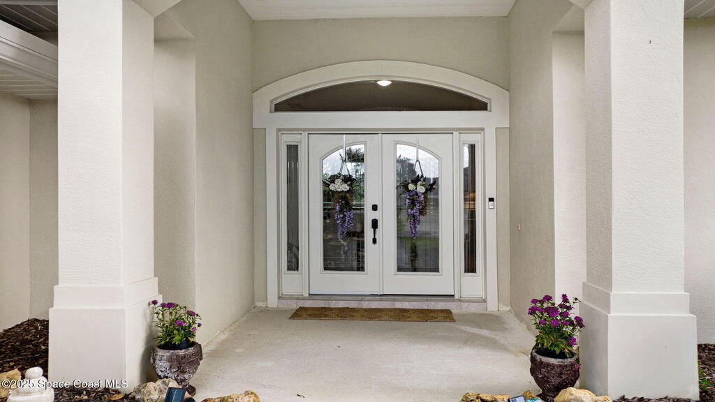 Captivating Tropical Lake & Preserve Views, with Mature Trees located in the highly rated Viera school system. This Custom Built 3 Bedroom; 2 Bath home with original plans available. offers endless possibilities. Features high ceilings, generous storage, stainless-steel kitchen appliances and a removable banquette dining area. A second (walk-in) pantry is conveniently located off the drop zone near the garage. The great room offers new luxury vinyl plank flooring, while the primary suite includes battery-operated draperies, dual vanities, dual closets, a water closet with attached laundry with built in craft area, and access to a private meditation area. Bedroom 3/Den features double doors and a spacious walk-in closet. Upgrades include impact windows (master bay & office), a new storm shutter on the screened patio, and a central vacuum system. Enjoy community amenities-pool, park, basketball court, & walking trails--all minutes from I-95, dining, shopping and the beach!