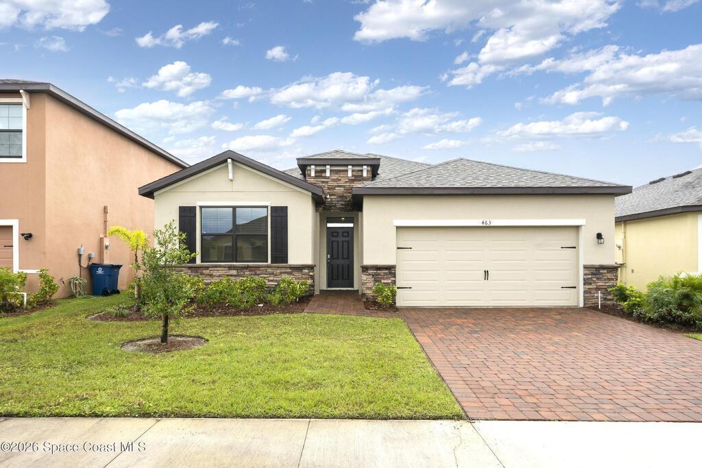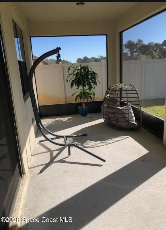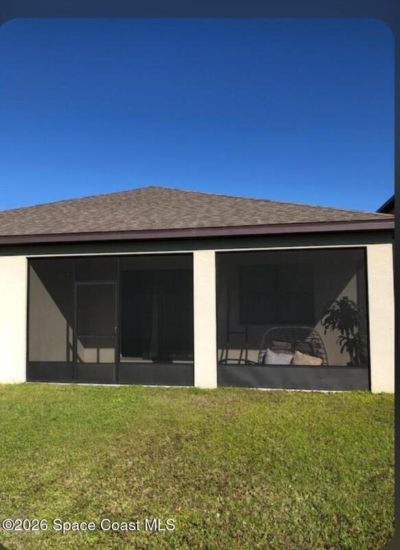 Welcome to this beautifully maintained, move-in ready home located in the sought-after gated community of Bayside Lakes. Built in 2022, this residence offers soaring ceilings and a bright, open-concept layout designed for modern living. The split floor plan provides three generously sized bedrooms on one wing, while the private primary suite is tucked away at the rear of the home for added privacy. The primary suite features dual walk-in closets and a spa-inspired en-suite with double vanities. Enjoy Florida living year-round from the expansive screened-in back porch overlooking the backyard. Bayside Lakes offers wide streets, winding sidewalks, and a community pool, creating a true neighborhood feel. This home is available April 1 and ready for its next owner.