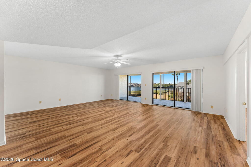 Enjoy front-row sunset views over the Banana River from this rare 2-bedroom, 2-bath condo in Fountain Cove. With nearly double the balcony and living space of any neighboring units, this wide-layout plan feels more like a stand-alone home than a condo, offering unobstructed panoramic water views. Inside, you'll find it warm and inviting, with new laminate flooring in the main living areas and a spacious, open layout that's ideal for everyday living or seasonal stays. The large primary suite offers water views and an en-suite bath, while a private in-unit washer and dryer and a one-car garage just steps from the main building add everyday convenience. Fountain Cove offers resort-style amenities including a riverfront heated pool, spa, tennis courts, and scenic boardwalk. The oversized balcony is perfect for relaxing, watching wildlife, or taking in the boat parade and spectacular sunsets. All just a short walk to the beach, Publix, and restaurants.
