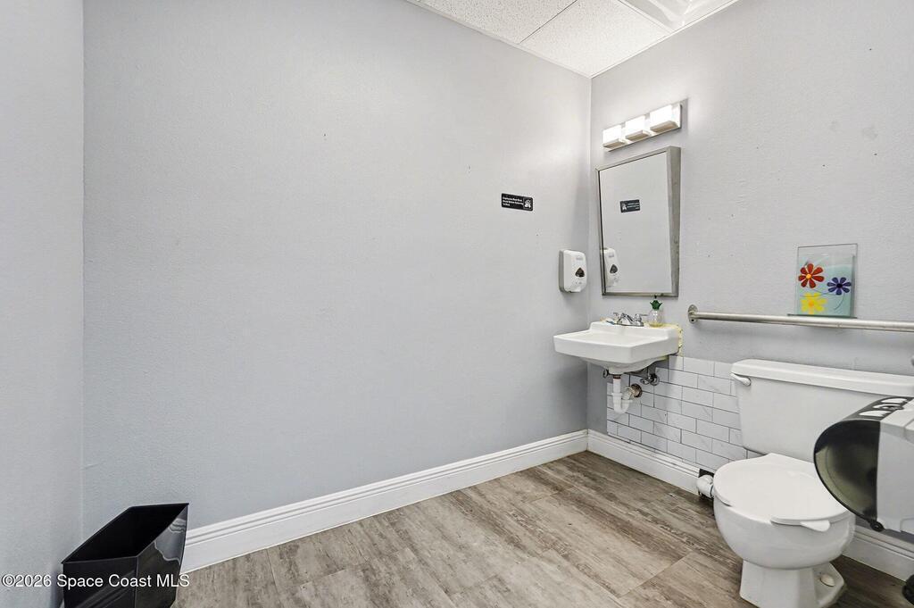 1219sqft of office/retail space on highly visible, high traffic Hibiscus Blvd just off of US1. 425 sq feet of garage/warehouse space with a roll up door for added storage for deliveries. Design the space to your needs, currently set up as a salon. 2 bathrooms. Parking lot. Adjacent professional offices.