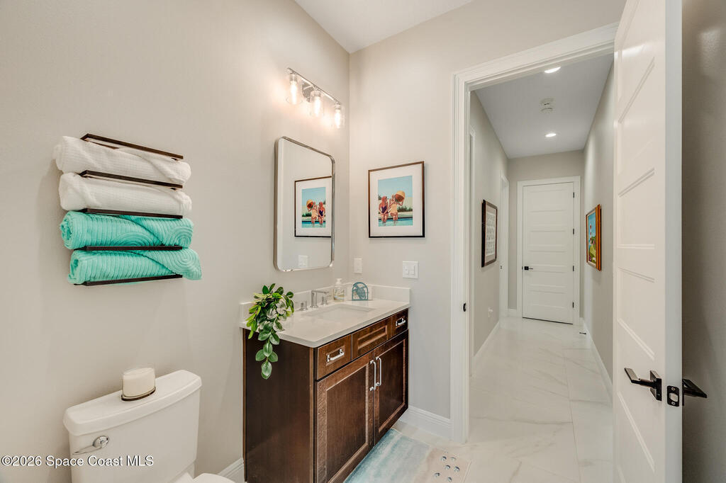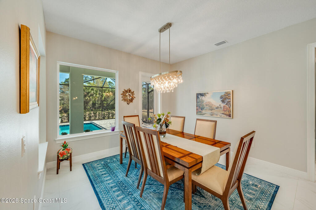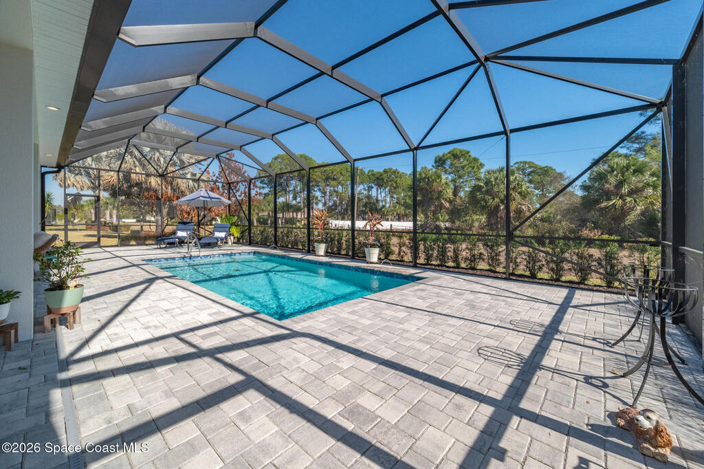 This newly built custom home exudes quality craftsmanship and subtle sophistication for those seeking quiet comfort, safety, and effortless entertaining. Soaring ceilings, oversized windows, and expansive, light-filled spaces create an airy and open ambiance, while hurricane impact doors and windows provide true peace of mind. This dream home features an open-concept great room and chef's kitchen that flows effortlessly outdoors to a private lanai with a screen enclosed and heated saltwater pool. The chef's kitchen boasts beautiful quartz countertops, a huge island, and an extra-large walk-in pantry. Porcelain tile flooring throughout the home ties the space together with timeless elegance. Designed with multigenerational living in mind, the home features two primary suites, one of which can easily convert to full wheelchair access--perfect for aging parents. Live well and entertain effortlessly in this newly constructed home while enjoying years of worry-free maintenance.