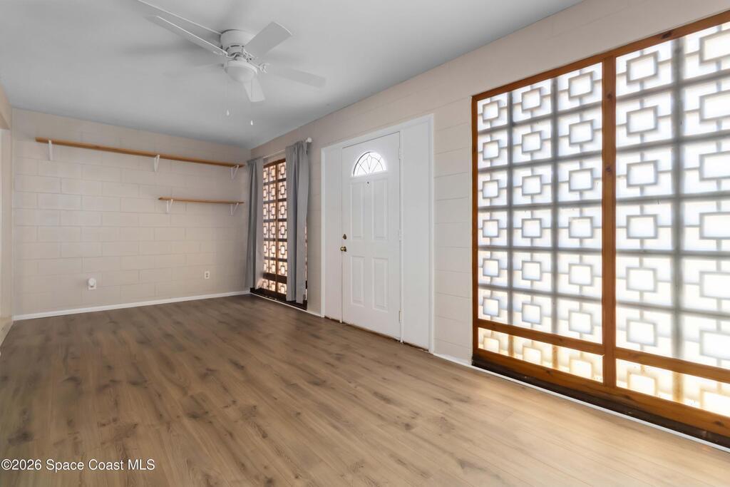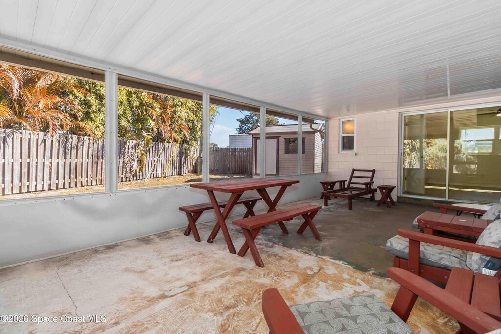 Corner-lot cutie with upgrades galore! This concrete block 3/2 is packed with cool features you'll love: new laminate floors, fresh paint, impact windows, and no popcorn ceilings. The oversized 1-car garage plus extra guest parking makes hosting easy, and it's wired for a whole-house generator for peace of mind. Sip cocktails on the large screened-in patio, catch rocket launches from your own backyard, and enjoy a yard with room for an RV or even a future pool. There's also a shed for all your lawn gear. Big-ticket items are already done: roof approx. 6 years, water heater 2023, HVAC 2016. Easy Florida living at its best!
