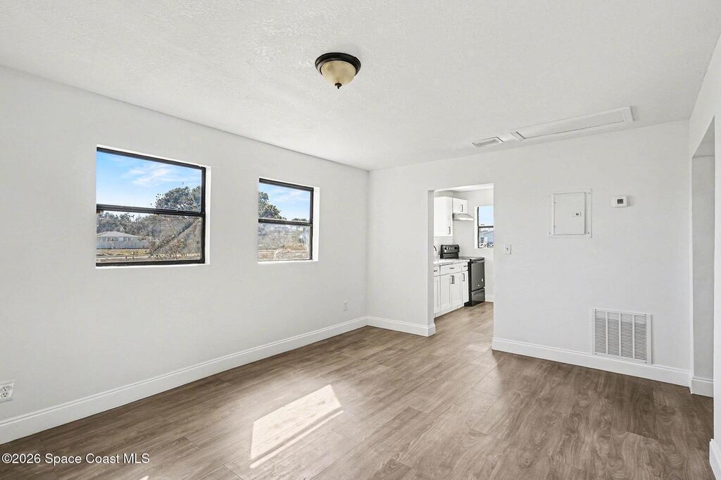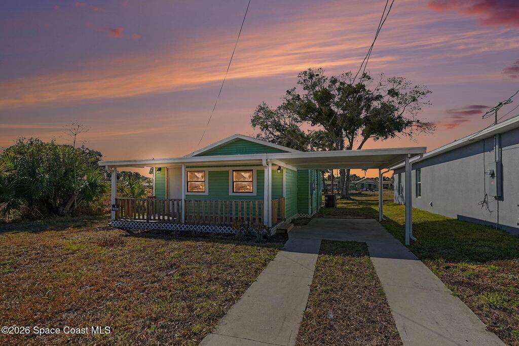Check out this charming bungalow-style home just minutes from Cocoa Village. The .21‑acre lot features mature trees, a covered front porch perfect for morning coffee, and a covered carport. You're only 15 minutes from the beach and moments from Cocoa Riverfront Park.Inside, the home offers a bright kitchen and two comfortable living spaces. The bedrooms are spacious and include built‑in closet organizers. A modern bathroom and vinyl flooring throughout add to the home's appeal.