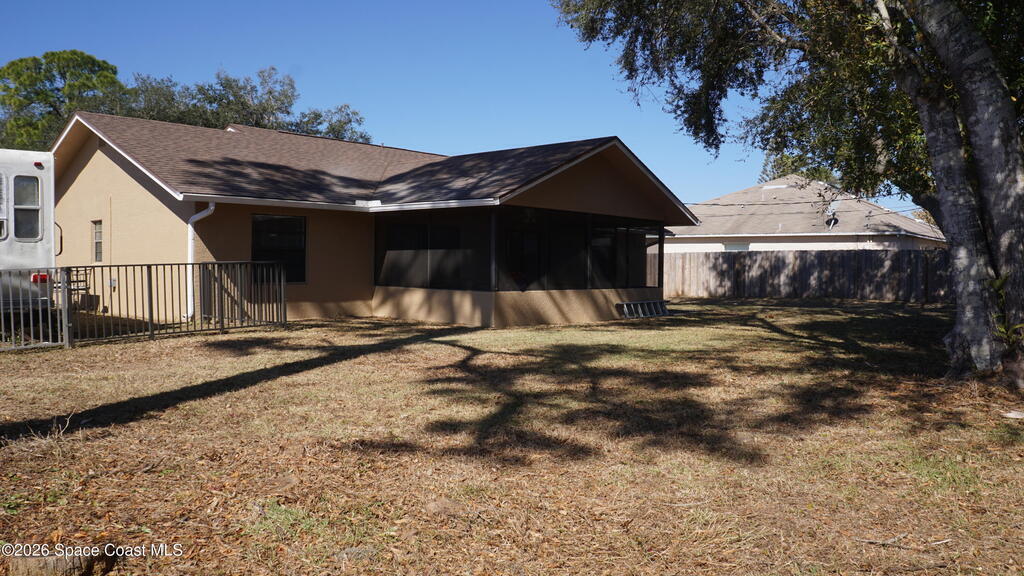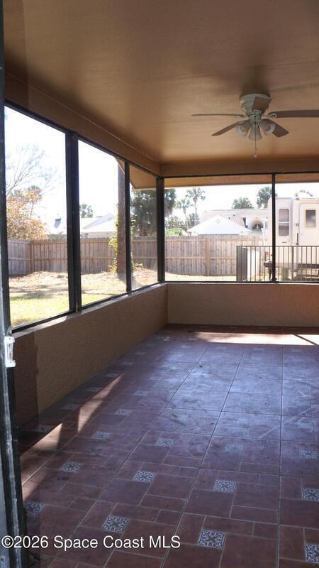 Opportunity Awaits! This fantastic 3-bedroom, 2-bath home sits on a spacious lot, offering plenty of room for outdoor activities and relaxation. The home features a wide-open floor plan, ideal for entertaining family and friends. Located just 15 minutes from the beach, you'll enjoy easy access to sun, sand, and surf.The bright living room showcases two large sliding glass doors that flood the space with natural light. The kitchen is equipped with all stainless-steel appliances, generous counter space, and functionality for everyday living. The primary bedroom includes an en-suite bathroom and ample closet space, while the two additional bedrooms are perfect for guests, a home office, or flex space. Roof less then 2years old.Step outside to the expansive, fully fenced backyard, featuring a HUGE screened-in lanai--ideal for outdoor dining, entertaining, or simply enjoying your private retreat.Don't miss your chance to make this beautiful home yours.