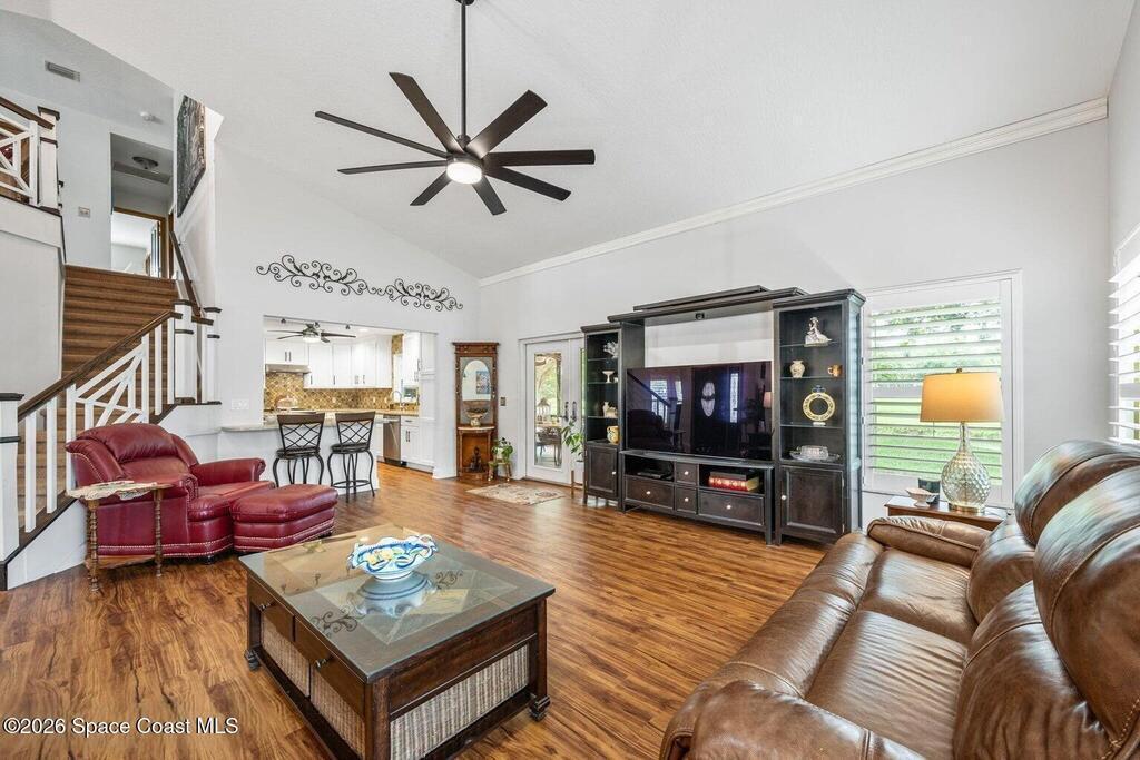 $$ 10,000$$ FLEX CASH AVAILABLE! Discover the perfect blend of comfort, style, and charm in this spacious 2,700 sq ft home located Watermill Estates on Merritt Island. This beautifully maintained residence offers 4 bedrooms, a versatile loft that can serve as a 5th bedroom, and 2.5 baths. Inside, enjoy a light-filled layout with a 1st floor primary suite, an upgraded kitchen featuring white shaker cabinets, premium quartzite countertops, stainless-steel appliances, and sleek laminate flooring. Solid wood interior doors, Plantation Shutters, Impact-Rated Windows, New Roof in 2022, New A/C in 2025 and the exterior was just painted adding value and peace of mind for the new owners. Step outside to a large screen enclosed covered porch & a sparkling 16' x 31' saltwater pool offering serene lakeside views--perfect for sunsets, relaxing, and entertaining. Close to schools, shopping, the beaches, & just 50 minutes Orlando International Airport.