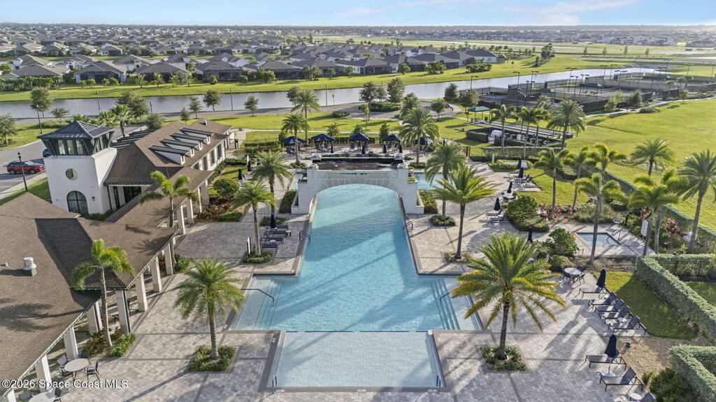Welcome to Bridgewater at Viera, a premier 55+ gated community! This upgraded one-story home offers maintenance-free living with long pond views and an extended screened lanai.Inside features include fresh interior paint, epoxy floors in garage, 10-ft ceilings, 8-ft doors, crown molding, plantation shutters, and pendant lighting. The kitchen boasts granite countertops, a large island, new stainless steel appliances, and a walk-in pantry.The primary suite offers dual sinks, a walk-in tile shower, and His & Hers walk-in closets. Additional upgrades include a whole-home water filtration system, built-in accordion shutters, and electric roll-down hurricane screens for lanai.Enjoy resort-style amenities including a pool, fitness center, yoga studio, movie theater, pickleball, tennis, and walking paths--all in a golf-cart-friendly community.Come see why Bridgewater is the perfect place for 55+ living!
