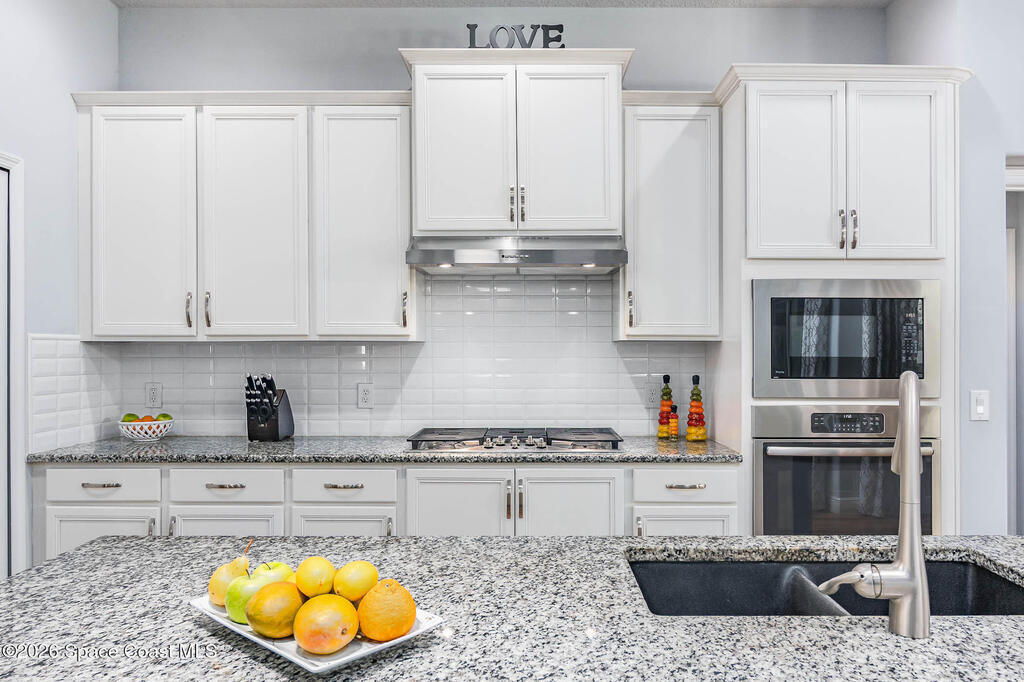 Immaculate home just 9 min. from the beach, close to shops, restaurants, grocery stores & A-rated schools. Designed for comfort & entertaining, this open-plan home features an exceptional outdoor living space with a summer kitchen, including a grill & gas burners, plus a gorgeous swimming pool with a waterfall & shallow entry, ideal for kids or in-pool seating. Fully fenced yard w/ two gates & outdoor TV. Inside, enjoy high ceilings & wood-look tile throughout, paired w/ white cabinets & granite counters. The kitchen is a standout w/ SS appliances, wall microwave & oven, vent hood, supersized island & casual dining area overlooking the large lanai. Additional upgrades include extended driveway, epoxy-painted garage, cabinets in the laundry room, tankless gas water heater, AC w/ UV light & overflow safety system, security camera system & solar panels to be paid in full at closing. Owner averages only $50/month electric bill. Loaded w/ upgrades & thoughtfully designed for Florida living