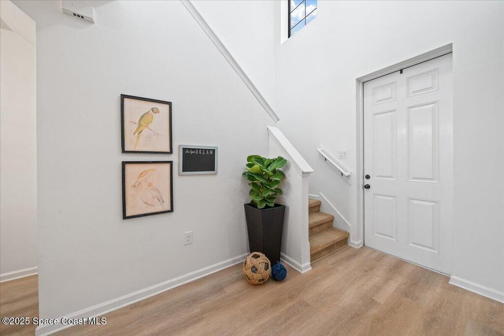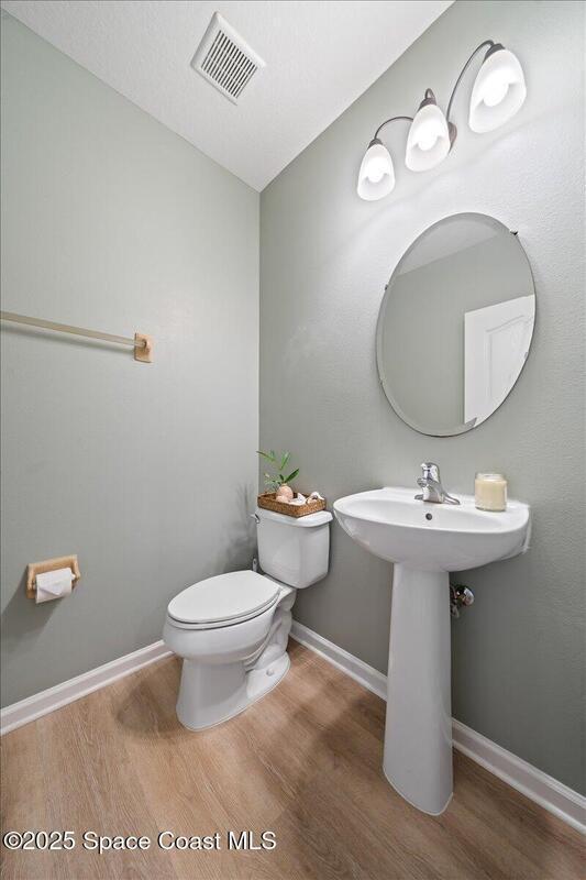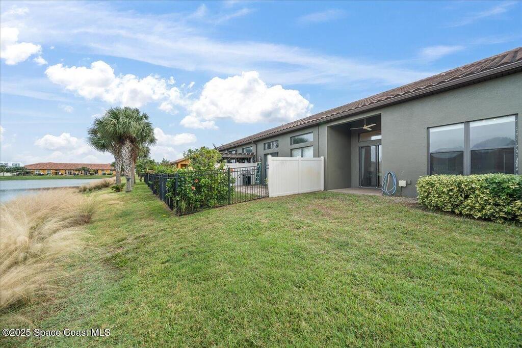 This spacious 2-story townhouse in the sought-after Montecito community features 3 bedrooms, 2.5 baths, with the primary bedroom on the FIRST floor. The open-concept kitchen boasts granite countertops, stainless steel appliances, and a breakfast bar, seamlessly flowing into the bright living area with abundant natural light. The primary bedroom includes an en-suite bath for added privacy. Upstairs, a versatile loft can be used as an office, playroom, or media room. The two secondary bedrooms are generously sized with walk-in closets. Enjoy the peaceful private courtyard with lake views, perfect for relaxing. Located within walking distance to the beach, and with easy access to shops, restaurants, schools, and Pineda Causeway, commuting to I-95 is a breeze.
