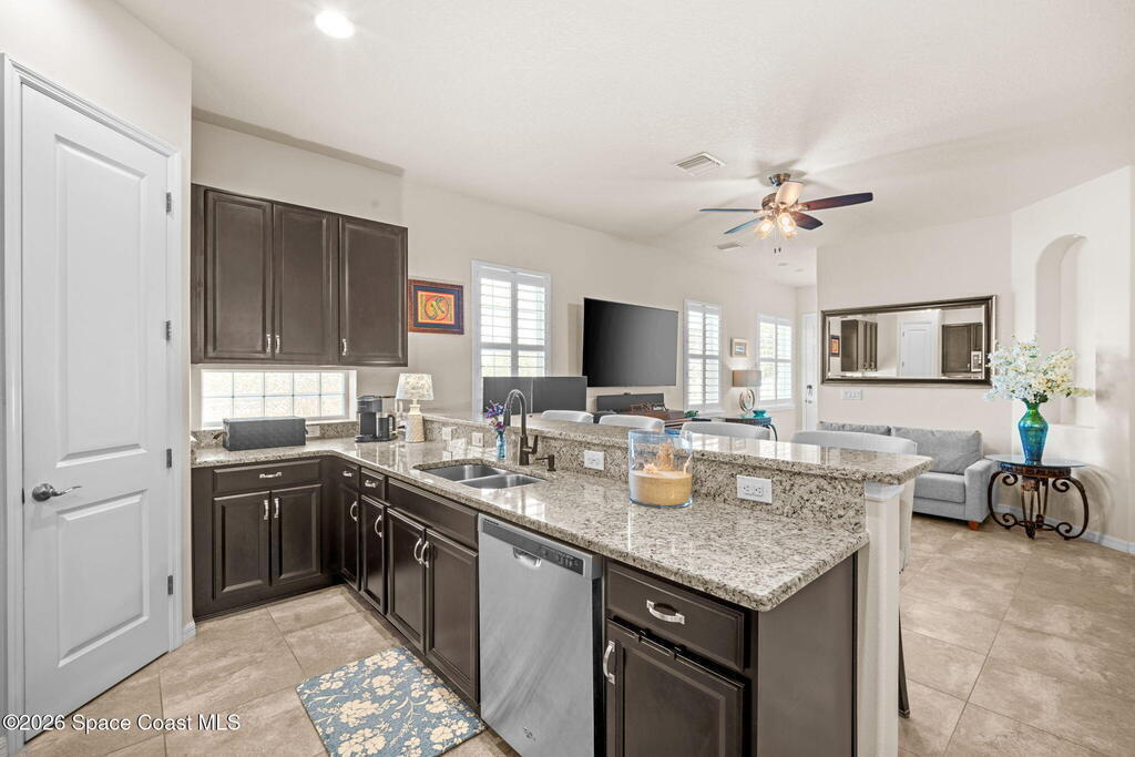 Rare Augustine model in Stadium Villas West, ideally positioned on a premium corner homesite with lush green space and exceptional privacy. Impeccably maintained & truly move-in ready, this residence shows like a model. Elegant 20'' tile flows throughout--no carpet. The kitchen and baths feature upgraded granite, rich maple cabinetry with soft-close drawers, custom walk-in pantry, stainless appliances, and a tankless gas water heater. The spacious owner's suite offers a custom walk-in closet and raised double vanity. Open-concept living with high ceilings creates a bright, airy ambiance, complemented by new plantation shutters throughout. Tile roof, 21/2-car garage with epoxy flooring, custom storage and overhead organization. Energy-efficient design delivers low electric bills. Lawn care included, along with community dog park and walking trails. Roof insurance & exterior paint covered. One of the finest upgraded single-story homes in the community-an exceptional corner lot opportunity