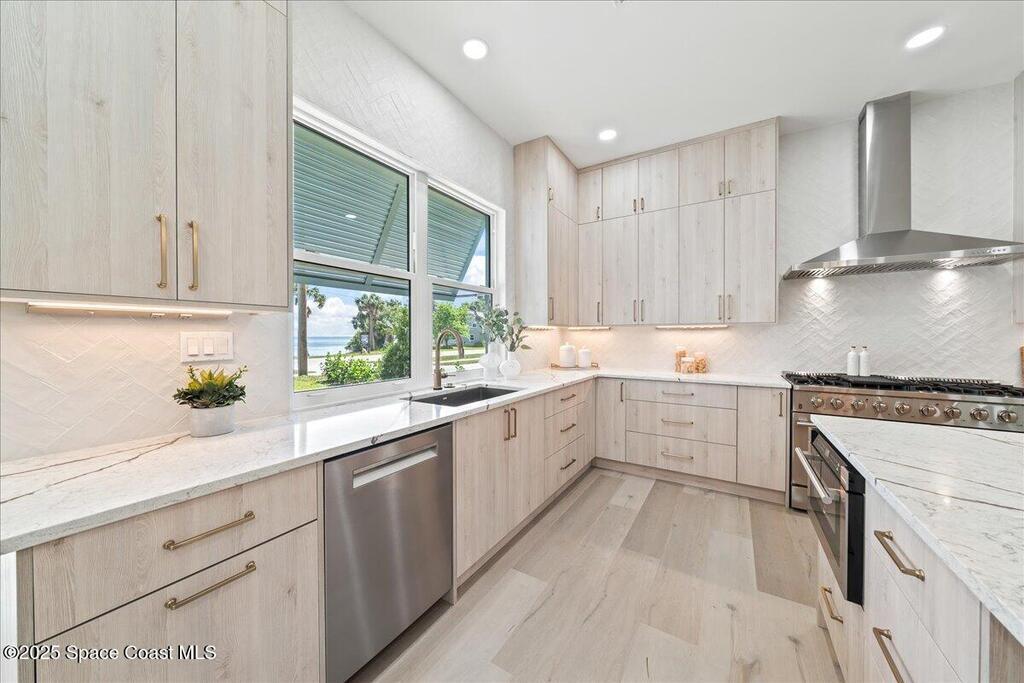 This beautiful riverfront property in Titusville, Florida, situated on Indian River, provides spectacular views of the water and unobstructed views of the launch pads. The newly developed house has a coastal contemporary design, which seamlessly blends modern luxury with classic charm. As soon as you step inside, you will be greeted by a welcoming and spacious open-plan living area. With four bedrooms and three and a half bathrooms, this home offers ample space for everyone. The backyard will include a fenced-in pool, spa, and a summer kitchen perfect for relaxing and enjoying the warm summer days. Don't miss your opportunity to see this pristine new property.