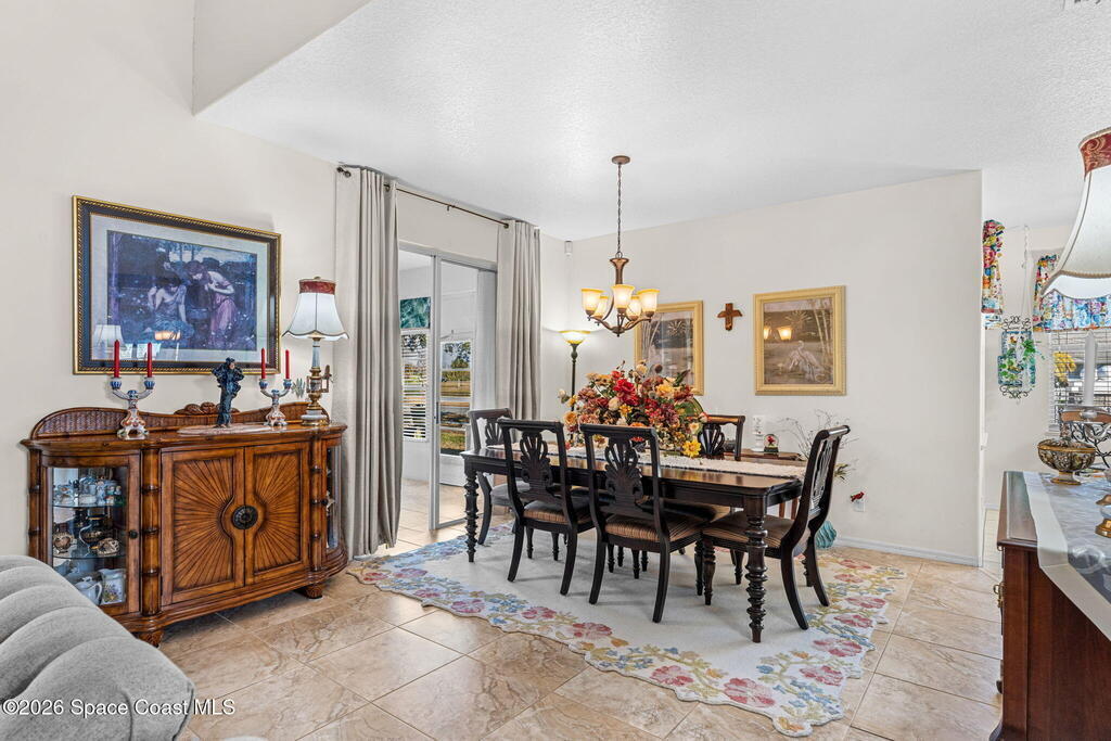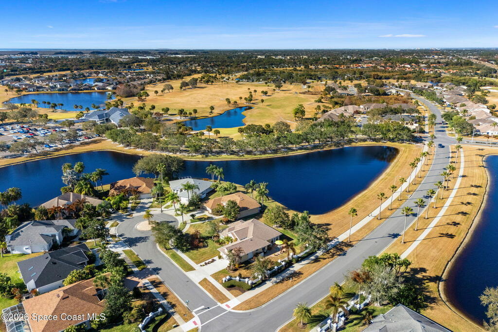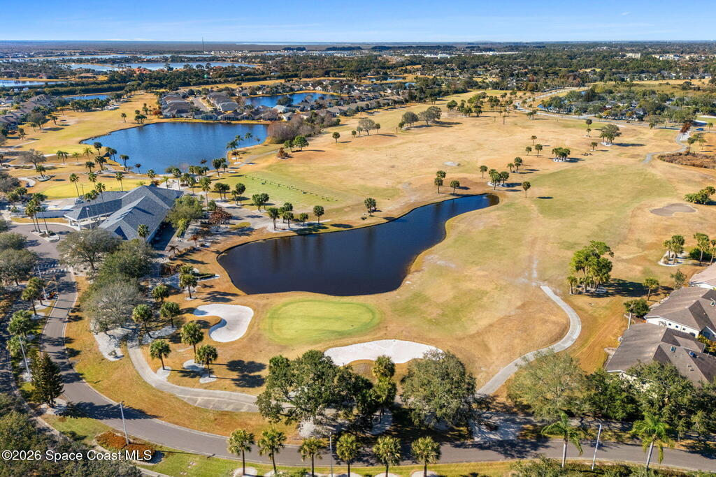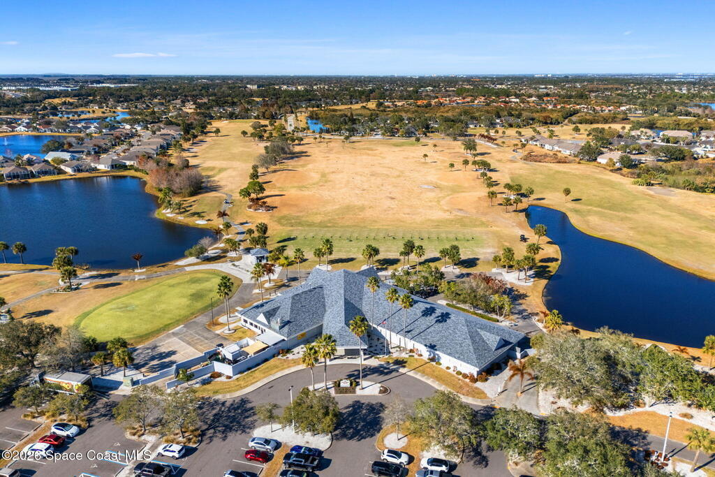 Beautiful 3BR/2BA home on a premium corner lot with water views in sought-after Viera East. Light and bright with abundant windows and tall ceilings. Spacious living and dining room combo opens to a large enclosed lanai with stunning lake and golf course views. Kitchen features a breakfast bar and a breakfast nook. Tile flooring throughout the main living areas. Generous primary suite with shower, tub, and 2 walk-in closets. Indoor laundry. Oversized garage has a separate golf cart entrance! Charming patio area perfect for outdoor dining and entertaining, complete with a gas outlet for a grill. Community amenities include a pool, a clubhouse, a fitness room, and a yummy on-site restaurant. Enjoy relaxed Florida living in this beautiful golf course setting!