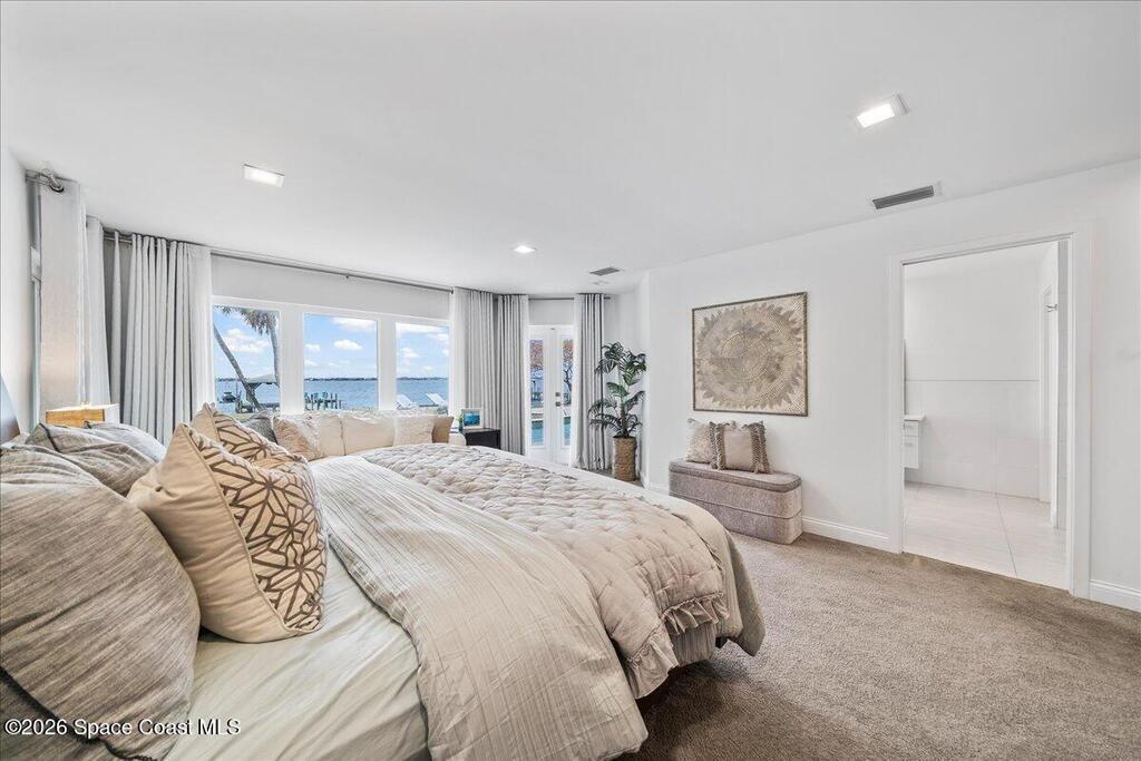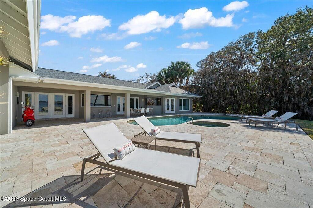 A fully reimagined, turn-key Indian River front property offering privacy, performance, and exceptional waterfront living. A rare direct Indian River waterfront estate offering 100 feet of frontage on .64 acres in the heart of Melbourne Beach. Oriented west to capture extraordinary sunsets across the wide river basin, this 4-bedroom, 2.5-bath residence spans 3,361 square feet of extensively redesigned living space. The home was thoughtfully expanded and structurally improved to maximize light, scale, and water views. A reconfigured open floor plan flows toward 7' x 12' pocketing impact sliders, creating a seamless transition to the waterfront. The 2022 kitchen renovation features Sub-Zero and Wolf appliances, an expanded island, custom cabinetry, and elevated finishes suited for both entertaining and everyday living. The primary suite was enlarged to create a true private retreat with a freestanding soaking tub, multi-head shower, quartz counters, custom cabinetry --