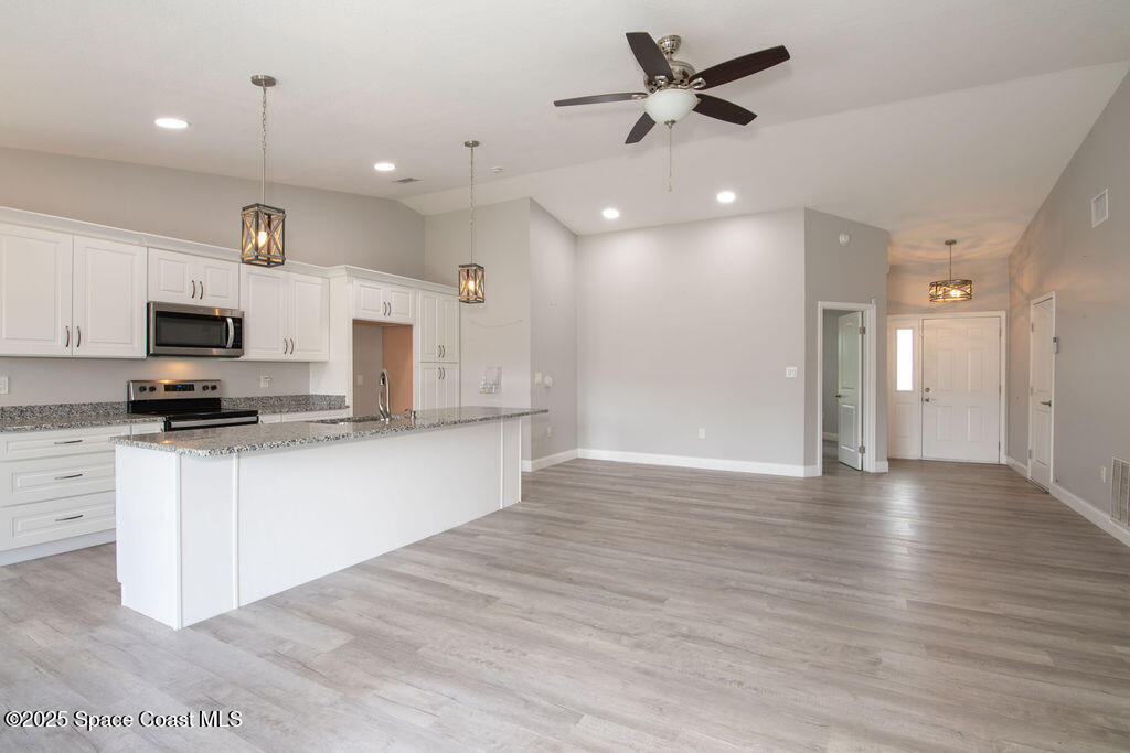 Breakfast Nook , Ceiling Fan(s) , Kitchen Island , Open Floorplan , Pantry , Primary Bathroom - Tub with Shower , Split Bedrooms , Vaulted Ceiling(s) , Walk-In Closet(s)