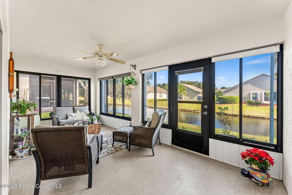 Experience relaxed, Florida living in the Gated 55+ community of Compass Pointe! This 3BD, 2BA home offers peaceful water views! Enter through the charming covered front porch to find, vaulted ceilings, two separate living spaces- a formal living & dining space plus a comfortable family room & breakfast nook. The kitchen is the heart of the home & designed for gathering, featuring a spacious island, granite countertops & bar seating. Wood-look tile enhances the bedrooms & the primary en-suites feature a generous walk-in shower. Enjoy the convenience of a dedicated laundry room & unwind on the vinyl-windowed lanai complete w/ an epoxy coating and overlooking the water. Recent updates include a New Roof & HVAC in 2019. The monthly HOA of $250 covers all lawn care and sprinkler maint. Compass Pointe amenities include a pool, spa, fitness center, clubhouse, putting green, shuffleboard, bocce & a full calendar of activities. Close to golf, shopping, dining, & Beaches!