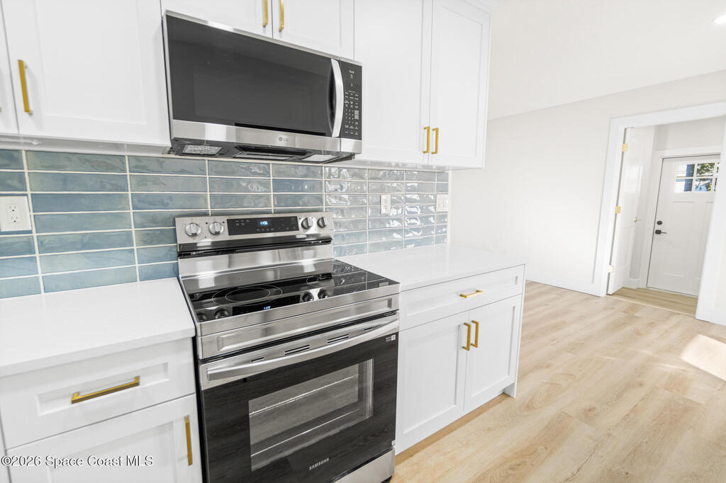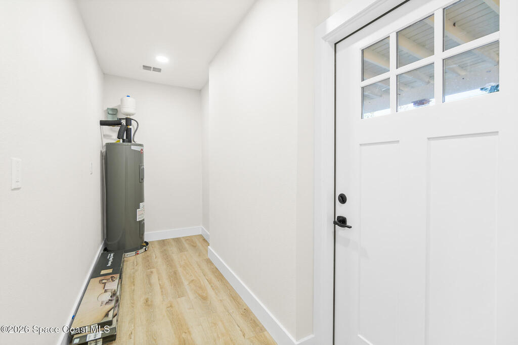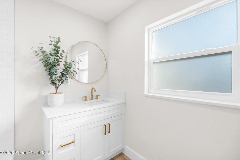 Looking for a quality custom home in Titusville that is sure to impress your friends & family? Look no further! This custom home shows like a model and is full of updates inside and out. The inside features 3 bedrooms, 2.5 bathrooms, laundry room, upgraded plank floors throughout, LED lighting, new interior paint throughout, upgraded baseboards, custom kitchen, and bathrooms. The kitchen features white shaker cabinets, quartz countertops, custom backsplash, gold handles, and upgraded stainless steel appliances. The bathrooms feature white shaker cabinets, quartz countertops, and custom tile showers. The outside features new exterior paint, NEW wood fence, custom wood accents, and a large storage shed. No HOA restrictions. NEW roof, NEW plumbing (no cast iron) NEW electric, New water heater, 2023 AC, and a 2018 septic system.