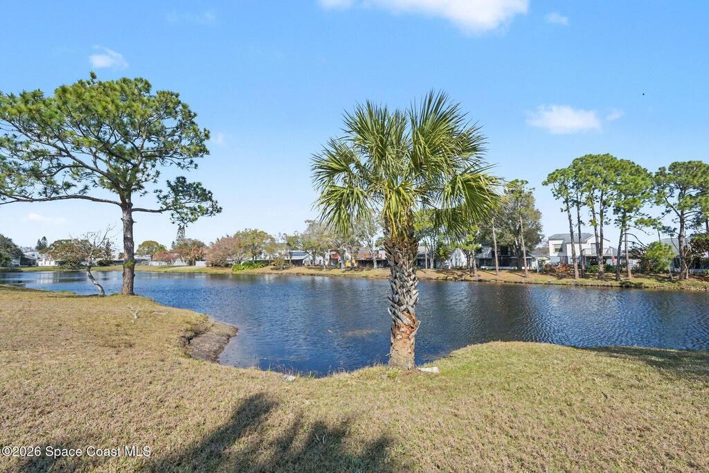 Just waiting for you!...a completely renovated lakefront home in a quiet neighborhood in the heart of Melbourne. You'll love to cook in the bright new kitchen with its quartz countertops, re-finished cabinets, pull-out shelving, and brand new fridge & range hood. A new half-bath was added for convenience on the 1st floor. New tile & luxury vinyl flooring throughout. 1st floor primary bedroom has a large walk-in closet with custom shelving. The all new primary bath features a glass shower, a freestanding tub, & dual sink vanity. Guest full bathroom also fully renovated with new tile shower, tile floor, & cabinet vanity. All new interior doors, baseboards/trim, & even new stairs with oak treads. Custom built-in cabinetry in great room. Electrical has been updated with smart switches, smart thermostat, & all new lighting fixtures throughout. New int/ext paint. Security in storms with impact windows on 2nd floor & shutters for 1st floor. Newer systems Roof (2018), AC (2024), & HWH (2022)