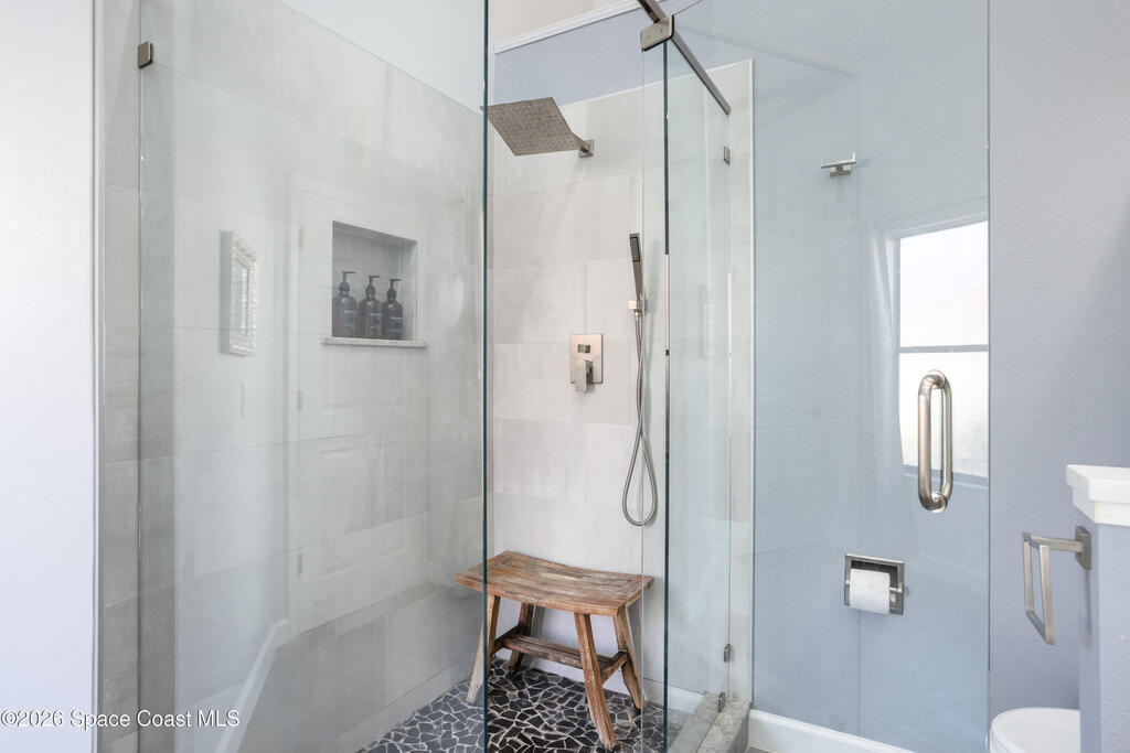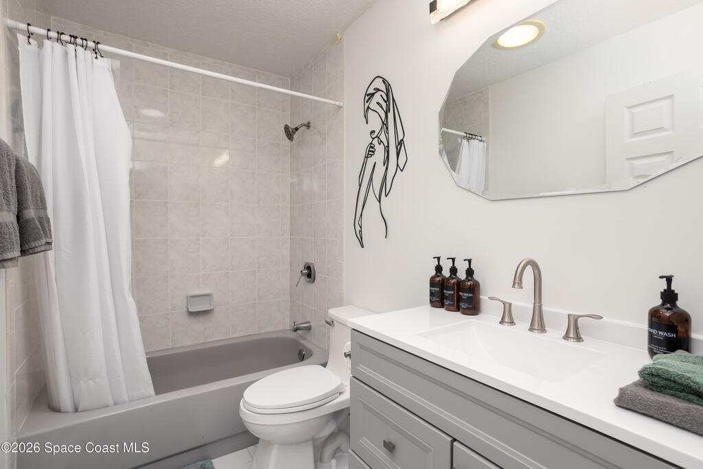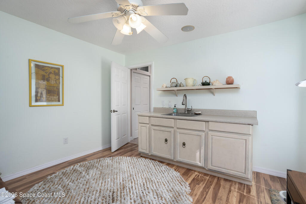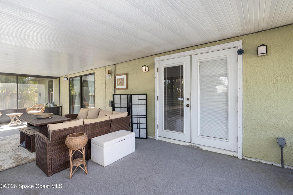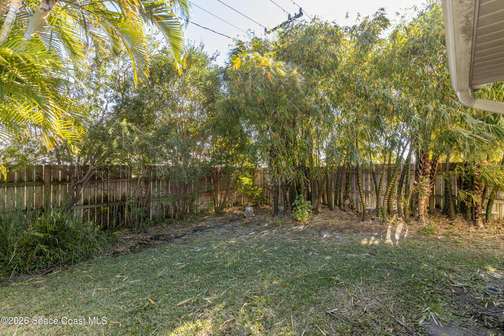 Tucked in Bel Aire Palms in Melbourne, this well-maintained 3-bedroom, 2.5-bath home offers light-filled space and thoughtful upgrades. Vaulted ceilings create an open feel throughout the main living areas. The spacious kitchen features smooth-top appliances, pull-out drawer cabinetry, and durable tile flooring, making it ideal for everyday living and entertaining.The primary suite includes a walk-in closet and walk-in shower, while two guest bedrooms provide flexible space for family, visitors, or a home office. One guest room features a private kitchenette, perfect for extended stays or multigenerational living.French doors lead to a screened back porch for easy indoor-outdoor living, overlooking a privacy-fenced yard. Added value includes hurricane shutters, city water and sewer, an indoor laundry room, a 2024 AC system, and a 2019 water heater.