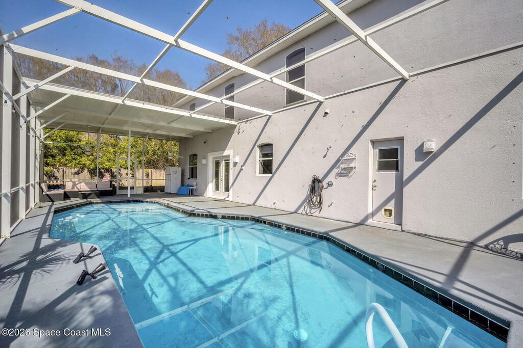 Expansive 3-lot property totaling 0.69 acres with a screened private pool and covered patio. 1,450 SqFt accessory dwelling unit (ADU) offering endless possibilities. The ADU can function as a guest house, in-law suite, workshop, game room, or additional garage space.Inside, you're greeted with 10-foot ceilings and recessed lighting throughout, a grand staircase, a formal dining room, and a formal living room that could easily convert into a bedroom or office. The home includes four storage closets for added convenience. The garage has been converted into an in-law suite, but it can be restored if desired.The primary suite features French doors to a private balcony, two walk-in closets, and a spacious en-suite bath. The 1,450 sq ft accessory building is designed as a 3-bedroom, 2-bath guest house, ideal for multigenerational living or as a rental.