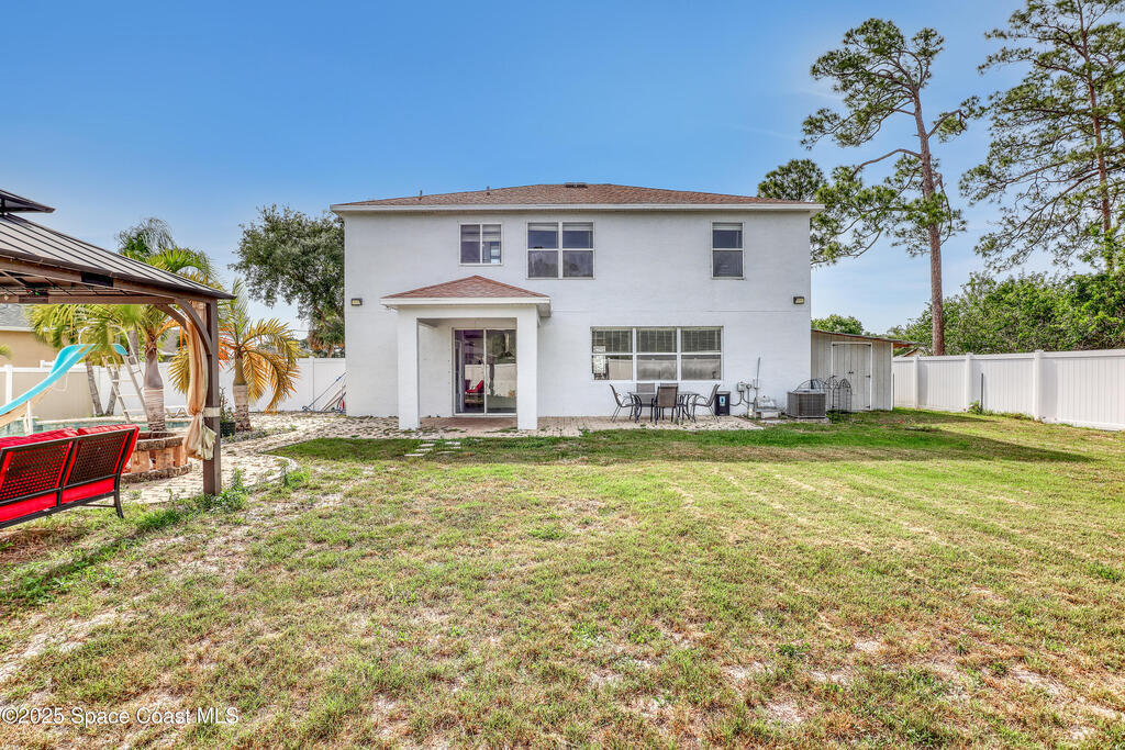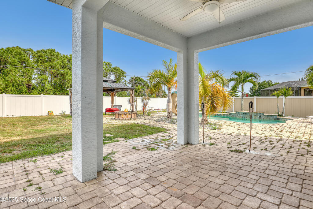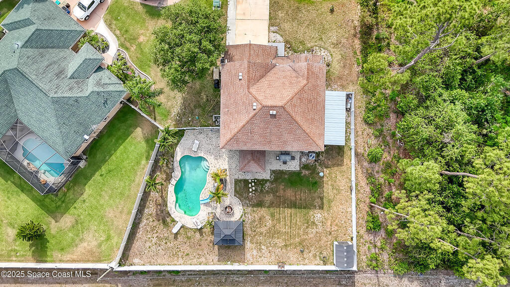 Discover your dream home in SE Palm Bay. This stunning 2006-built residence offers 2,704 sq ft of completely updated living space, featuring 4 spacious bedrooms including a private mother-in-law suite and 3 full baths. Entertain your family and friends in your resort-style backyard oasis. Beautiful swimming pool, cascading waterfalls, and a shaded picnic area perfect for al fresco gatherings. Inside, you have tile floors and modern finishes flow throughout an open concept layout, with a new kitchen that boasts stainless appliances and ample counter space. Just a few minutes from I-95 for easy commuting, and surrounded by the best restaurants, shops, and amenities. Don't miss the chance to make this property your own slice of Florida paradise!
