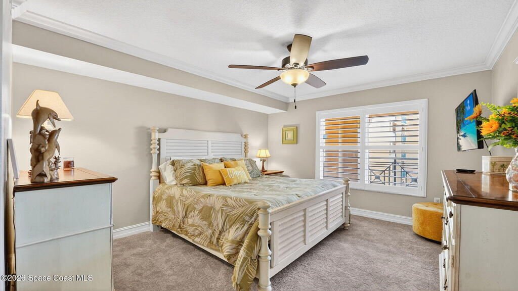 Gated stunning beachfront corner-unit condo fully remodeled and offering 4 bedrooms, 3 full baths, plus a private den. Enjoy sweeping ocean views from the spacious family room and dining area, both overlooking the beach. The luxurious primary suite features its own private balcony with gorgeous ocean views, a newly updated spa-style bath with double vanities, shaker cabinetry, quartz countertops,pedestal, soaking tub with shiplap accent wall, and large walk in closets. The updated kitchen offers shaker cabinets with soft-close hardware, quartz countertops, and a farmhouse sink. Guest baths are beautifully updated.Second primary with updated bathroom and private balcony. New Hurricane-rated sliding glass doors and new storm shutters provide peace of mind. Located in a gated community with heated pool, hot tub, fitness center with spa.New Luxury Vinyl thru out.Garage space and open parking. New roof.A/c 2022.Watch rocket launches from your balcony!Private beach boardwalk.