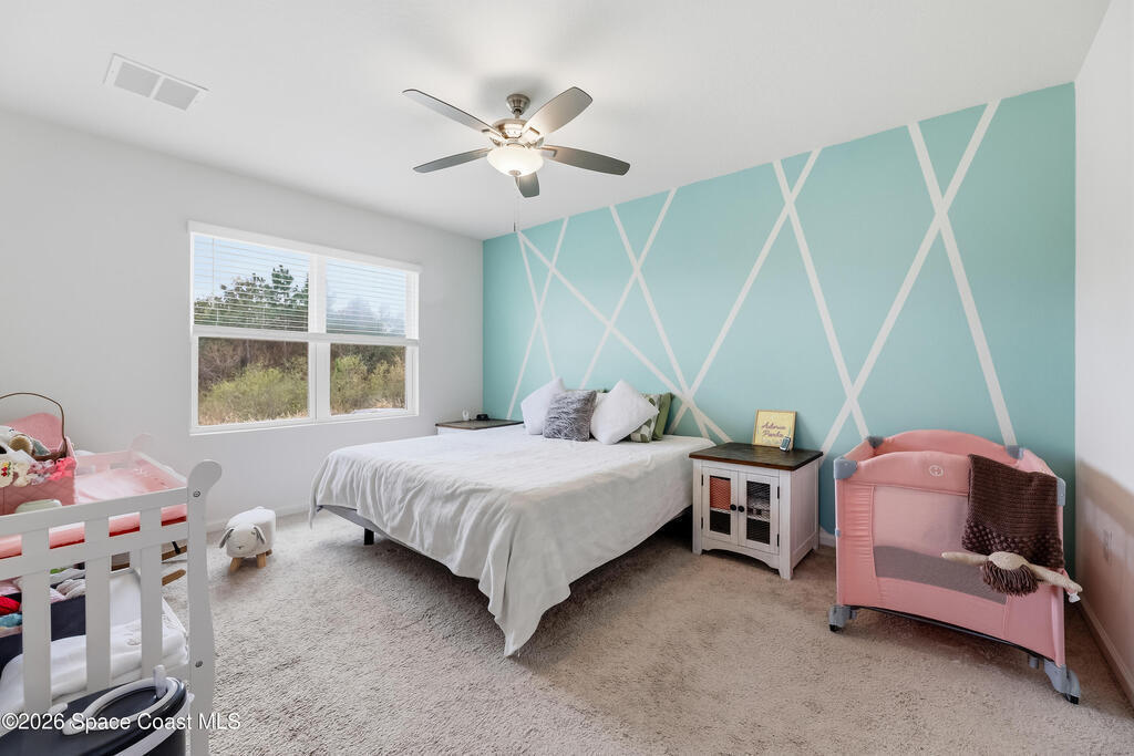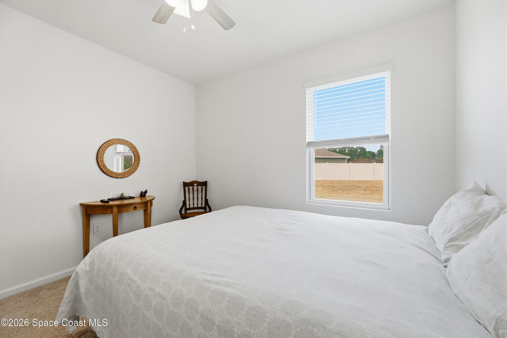 Built in 2021, this 4-bedroom, 2-bath home in the gated Brentwood Lakes community stands out with its RARE OVERSIZED SIDE YARD, a feature that sets it apart from others in the neighborhood. The open kitchen offers stainless steel appliances, including a new Samsung refrigerator. Tucked in the back of the community with minimal traffic and no rear neighbors, this home offers added privacy. Residents enjoy association amenities including a community pool and playground. Centrally located near shopping, dining, hospitals, entertainment, Melbourne Orlando International Airport and I-95. Owners relocating - furniture negotiable.