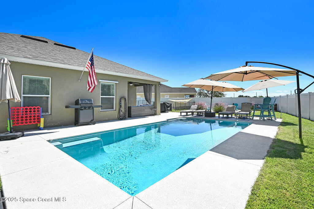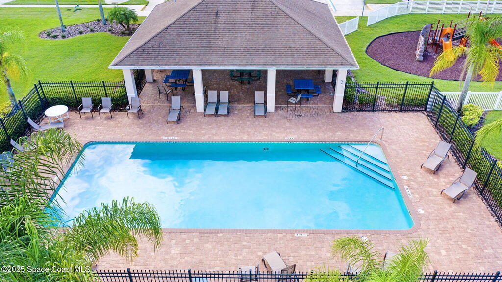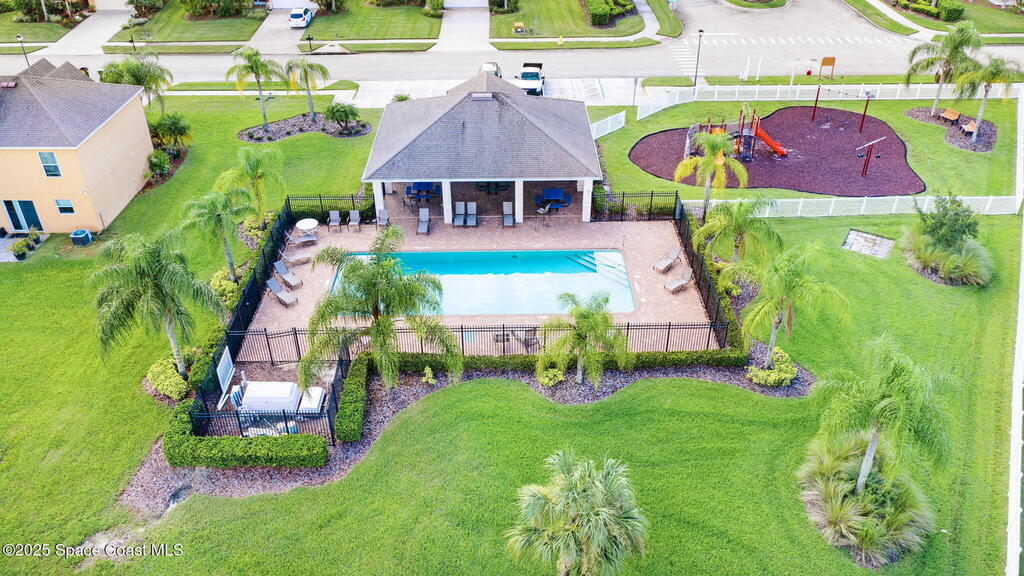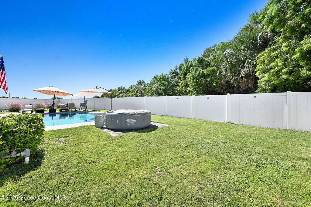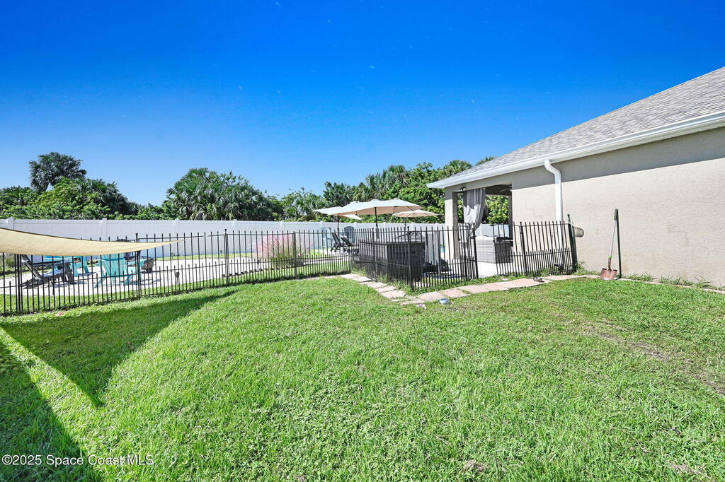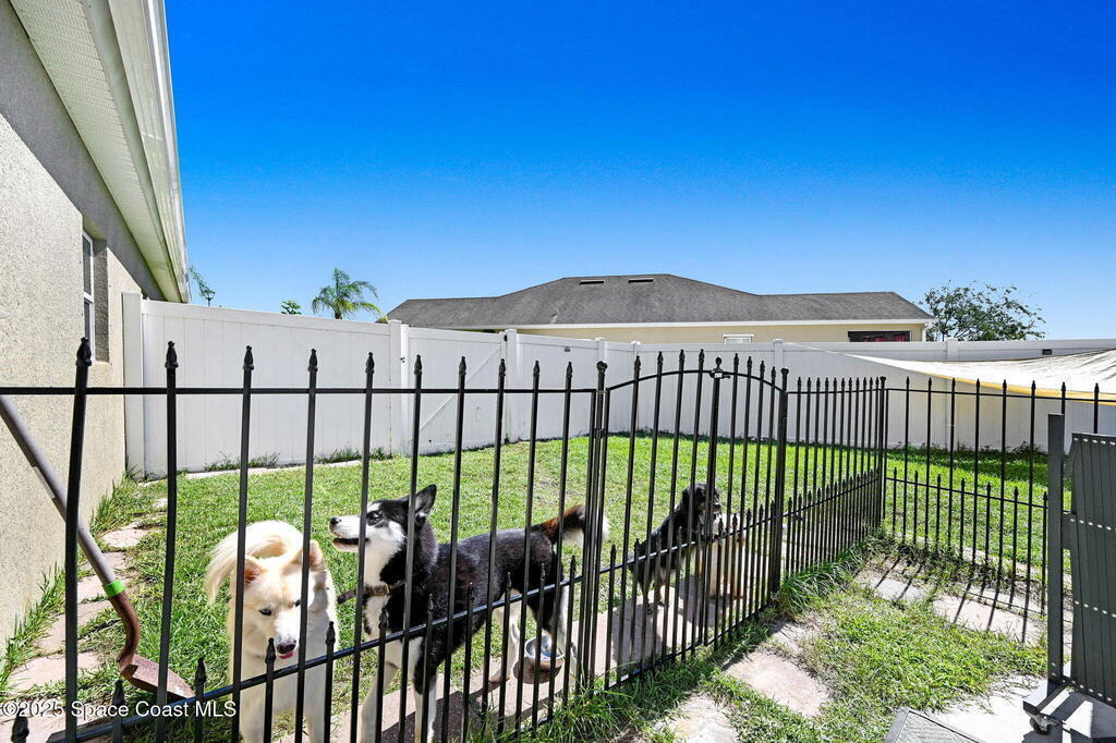 RELAXED COASTAL LIVING! This POOL home has it ALL! It's on a RARE CORNER pie-shaped lot with NO rear neighbors. Extra green space between the adjacent home for MAXIMUM PRIVACY. RESORT STYLE, fully FENCED backyard OASIS w a NEW SALTWATER POOL, adorable BEACH AREA and even a DOG RUN for your furry family members. Inside are 3 bdr, 2 baths, and a spacious living and dining area. The kitchen is tucked away yet opens to the cozy family room, perfect for entertaining or everyday living. The large primary suite features a tray ceiling and a walk-in closet with built-ins. The primary bath offers double sinks, soaking tub, and separate shower. Prime location in a sought-after GATED Parkside West community near St. Johns Heritage Pkwy and Malabar Rd, close to the new Publix and Fred Poppe Regional Park with dog park, trails, pickleball etc. Only 30 min from our amazing BEACHES. Major updates: Roof 2024, A/C 2022, Pool 2024. THE BACKYARD IS UNFORGETTABLE. ONE LOOK and YOU'LL KNOW IT'S THE ONE!