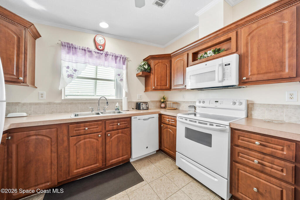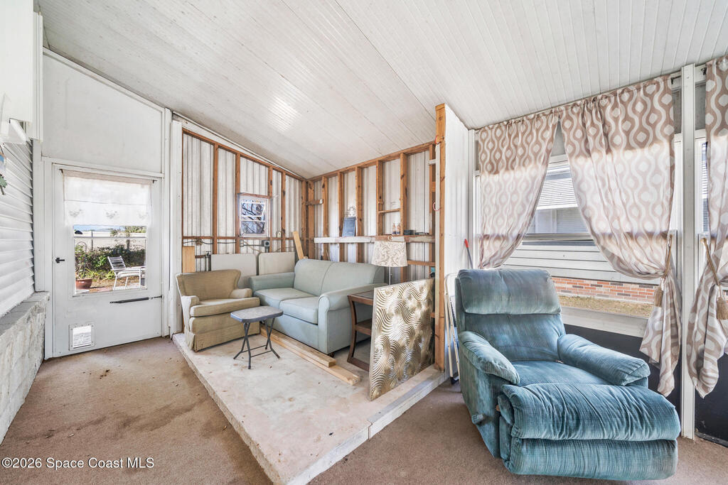 Palm Bay Colony is a 55+ community offering an active clubhouse, heated pool, pickleball, shuffleboard, tennis, and fitness center, and here, you don't just own the home, you own the land. This well-kept 2-bedroom, 2-bath home features vaulted ceilings, laminate flooring in the main living areas, and a stone wood-burning fireplace that anchors the space. The beautiful, updated kitchen offers solid wood cabinetry and opens comfortably to the dining and living areas. An in-home laundry closet is tucked into the second bathroom, and the washer & dryer stay. The primary suite includes a walk-in shower and generous counter space. Outside, enjoy a FL room, covered carport, storage shed, and a fully fenced backyard with mature trees and patio space - easy to maintain and enjoy Florida living. Conveniently located near shopping, dining, and the beaches. The $1,500 Palm Bay Colony membership has already been paid by the current owner and transfers to you, and the ongoing fee is just $45/month.